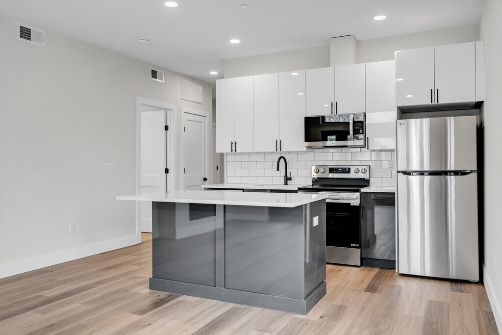Available 8/1/26!! Located next to Roslindale Village Train Station. 63 Belgrade is a 1 year old elevator building. # 204 is a 1 bed plus den/office/guest room and 1 full bath. Modern finishes with open concept layout,balcony and engineered wood flooring throughout. Kitchens feature European style cabinetry,quartz counters and stainless steel appliances. Designer tiled baths w/ glass shower enclosures. In unit laundry,large closets,Central Air and hybrid hot water heater. Pets ok with restrictions. Meter water additional $50 per month. MLS# 73483354