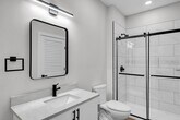 Located next to Roslindale Village Train Station. 63 Belgrade is a brand-new elevator building with garage parking. This unit is a 1 bed plus den/office and 2 bathrooms. Unit features an outdoor deck/ patio and 2 full baths. Modern finishes with open concept layout. Kitchens feature European style cabinetry,quartz counters and stainless steel appliances. Designer tiled baths w/ glass shower enclosures. In unit laundry,large closets,Central Air and hybrid hot water heater. Pets ok with restrictions. Lots of street parking available.Photos/videos may be of a similar unit. MLS# 73488955