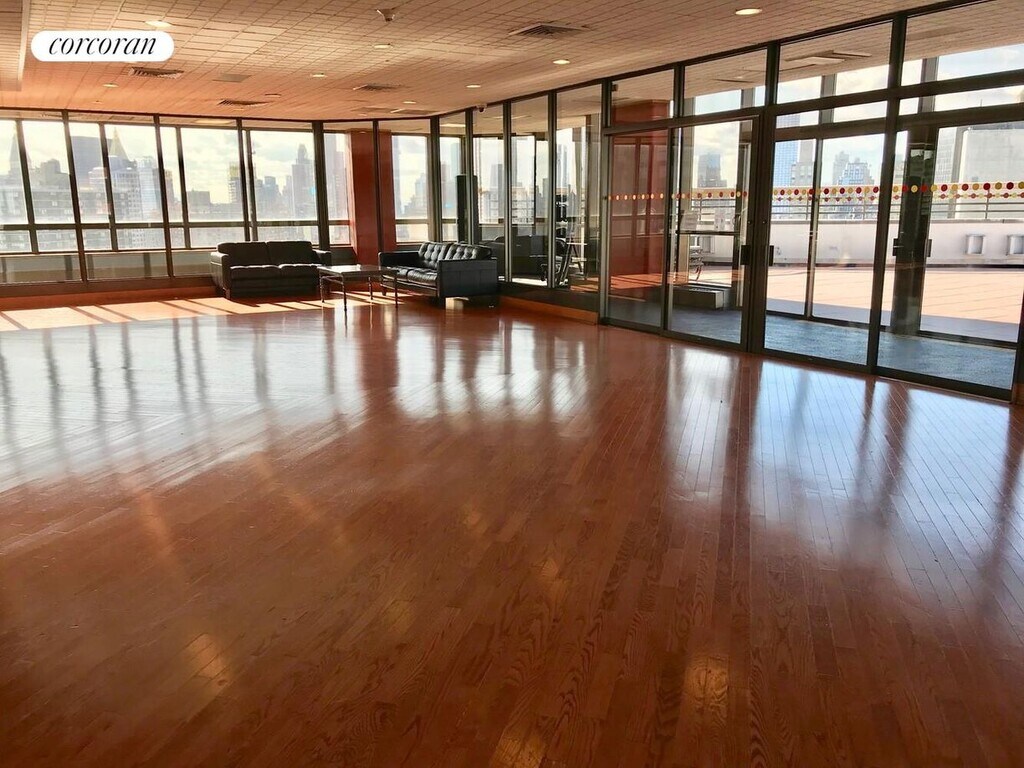 This spacious one-bedroom, one-bath residence offers unobstructed views of the East River framed by wall-to-wall windows that bathe the interiors in natural light. The entry foyer opens into a flexible living and dining area with generous closet space, complemented by a galley kitchen and an updated marble bath. The king-sized bedroom provides exceptional storage, and a temporary wall currently creates a second bedroom option. With low carrying costs, this home presents a rare investment opportunity. At Manhattan Place, residents enjoy the benefits of a full-service luxury condominium distinguished by its recently redesigned lobby of marble and dark wood, anchored by a striking waterfall feature that has earned acclaim and even national television attention. The building’s rooftop amenity suite includes a state-of-the-art fitness center, swimming pool, Jacuzzi, steam room, sauna, and two landscaped decks with panoramic city and river views. An indoor jogging track, Wi-Fi-enabled resident lounge with a piano, and a children’s playroom further enhance the lifestyle offering. Services such as a 24-hour doorman and concierge, on-site garage, valet, bike storage, and dry cleaning complete the experience. Investor-friendly and meticulously maintained, Manhattan Place blends modern sophistication with a resort-caliber way of life.