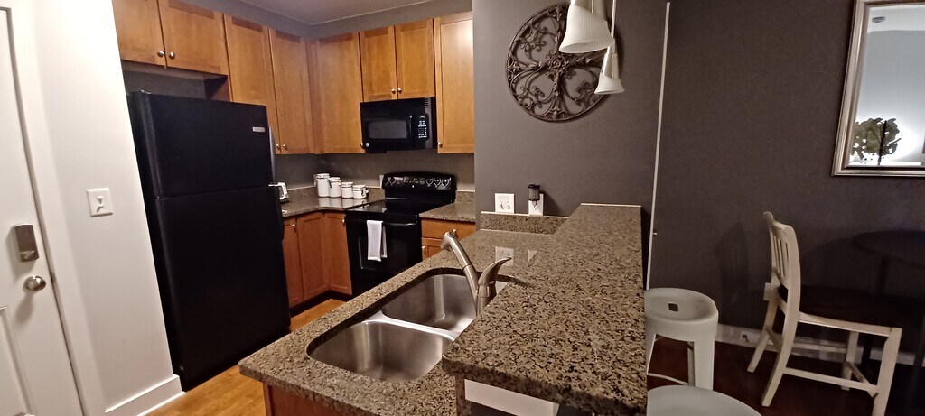 Furnished Rental Studio. Steps away from Wesley Heights Greenway entrance, walk or bike to Panthers Stadium, Groceries, Restaurants, and Breweries. 5 minutes to Wells Fargo Bank, 8 minutes to Bank of America Corporate Center, 12 minutes to Airport, 9 minutes to Novant Health Presbyterian Medical Center, 10 minutes to Northeastern University and UNCC Uptown,10 minutes to Atrium Health Medical Center. Steps to public transportation. The unit features granite countertops in the kitchen and bath, and hardwood flooring throughout. Fully stocked kitchen, bed, and bath essentials. Due to HOA guidelines, A 6-month Minimum stay requirement. Make this place your home away from home! Owner is Broker