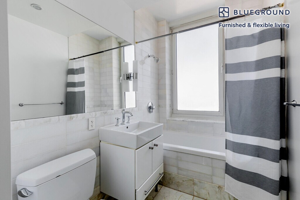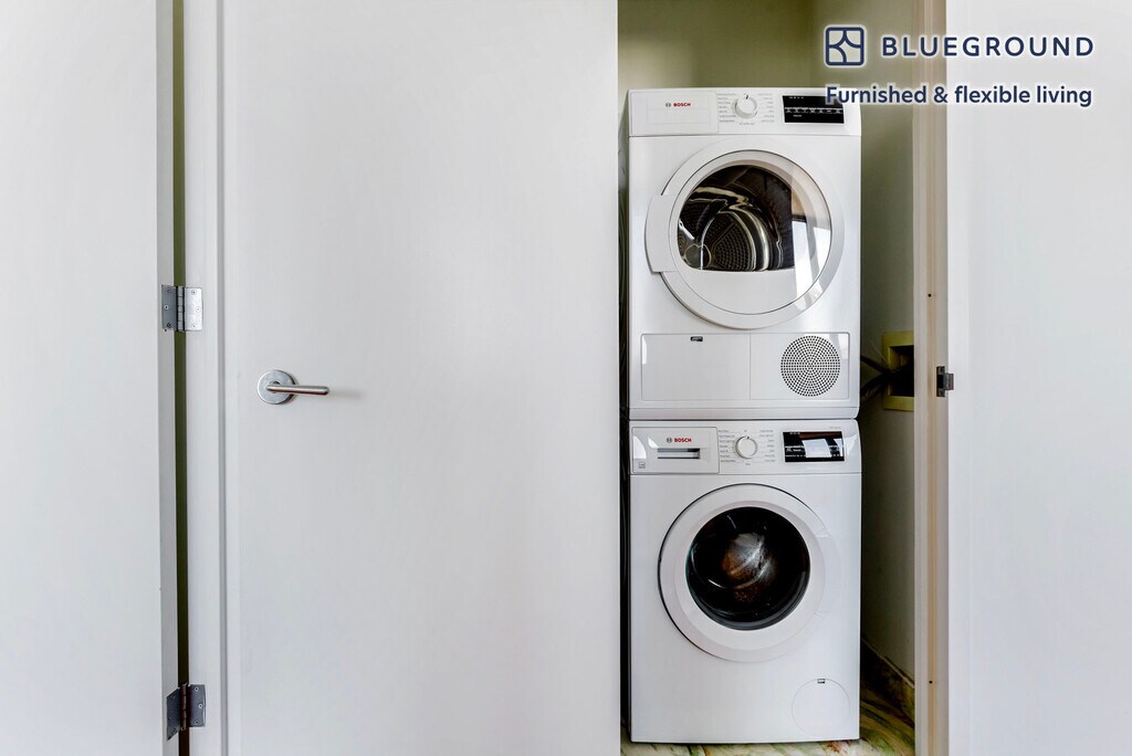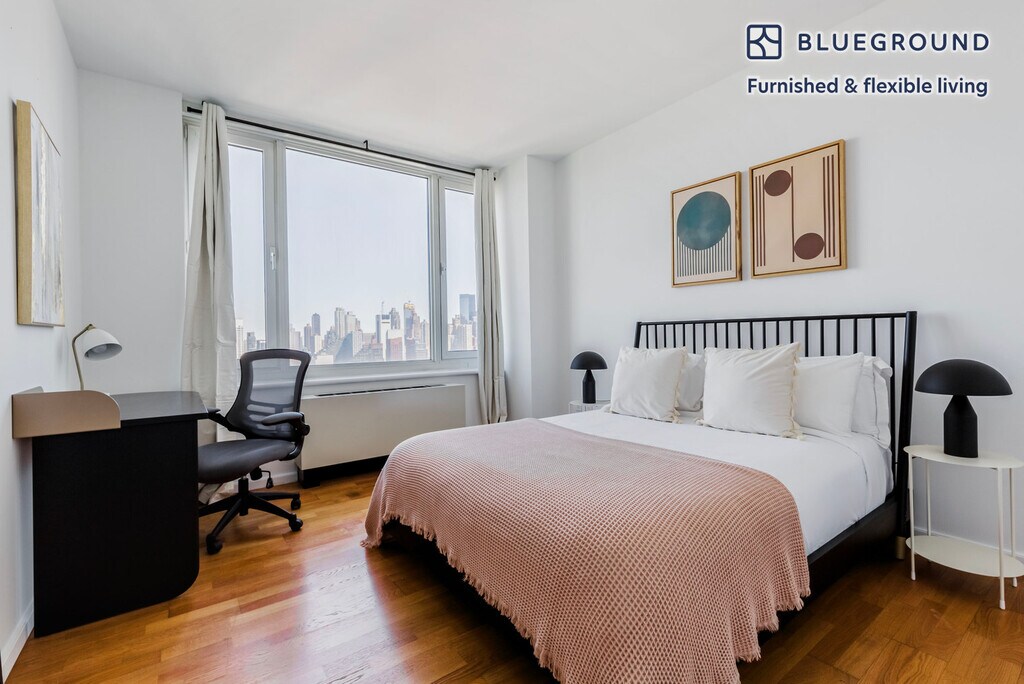 Discover the best of New York, with this one bedroom apartment in Hell's Kitchen with high floor views over the city. It’ll be easy to simply show up and start living in this furnished apartment with its fully equipped kitchen, living room, and our dedicated, on-the-ground support. (ID #NYC1477) The advertised rate of $6,420/month is the lowest available price, based on a 11 month(s) and 29 day(s) stay with a move-in date of April 2, 2026. Rates vary depending on the duration of stay, season, and other parameters. For exact pricing and additional pricing components, please visit our website and enter your desired move-in and move-out dates. The rate is applicable when billed upfront; it can be higher if billed in multiple payments. Brokers are welcome to reach out. Were you looking for an unfurnished lease? Try Blueground instead and upgrade from unfurnished to furnished living: - Furnished at rates comparable to unfurnished - No setup or furniture costs - save thousands - Move-in ready - save time, just bring your suitcase Designed with you in mind As with any Blueground apartment, you’ll find a thoughtfully designed space complete with beautiful furniture and a fully equipped kitchen in this one bedroom property. And, thanks to our superior quality mattresses, fully stocked linens, and towels, you can relax knowing you’ll always feel comfortably at home. When you’re ready for some fun, you can take in the New York vibes or bring the entertainment to you with the premium wireless speaker or smart TV. This apartment also offers in-apartment laundry. Sleeping arrangements Queen Bed, 63in/160cm Amenities Building amenities unique to this one bedroom apartment include an on-site: - Basketball Court - BBQ Area - Doorman - Dryer - Elevator - Washing machine - Media room - Pets allowed Arrival and ongoing support The entire apartment is yours to enjoy! Throughout your stay, you’ll have access to our Client Experience team through the Blueground App. You can schedule additional cleanings, submit maintenance requests, and view our neighborhood recommendations with just a few taps. We’ll share all details upon confirmation of your stay. Other things to note Building amenities may have an extra cost. This Blueground apartment has flexible lease options, allowing you to book it for one month, a year, or more. Pets are welcome, though weight limits and breed restrictions apply and may incur fees. Brokes CYOF. We take great pride in ensuring every photo displayed is shot in our own units with our actual furnishings. That said, we regularly refresh our decor and furniture arrangement, which may differ from what’s pictured. [SI]