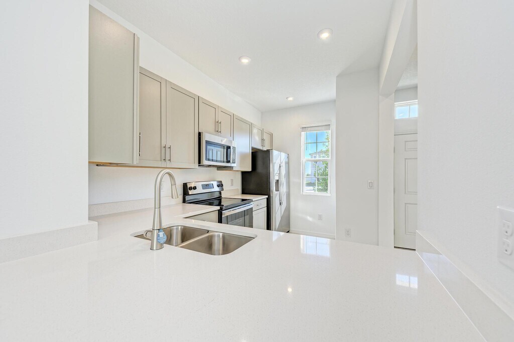 This is 2023 (very new) constructed 2 bedrooms and 2.5 bathrooms townhouse for rent at Edgestone at Artisan Lakes, a master-planned community in Palmetto, Florida. The Adler is a two-story townhome that has a thoughtfully designed floor plan featuring 1,123 sq. ft. of open concept living space. Upon entering the home, you step into the foyer which leads to the designer kitchen. You have a spacious dining and living room that provides access to the covered lanai area. Perfect spot to have your morning coffee! Upstairs you will find 2 large bedrooms, each with their own ensuite bathroom. For added convenience, the laundry area is upstairs located in between the bedrooms. This is a new construction property and you can be the first one to live in this beautiful townhome. Enjoy easy access to a brand-new pool and cabana area with grills, perfect for living the Florida lifestyle. From here, you're just a short drive to the best of Gulf Coast Florida. World-famous beaches, world-class shopping, dining and entertainment, downtown St. Petersburg, Tampa International Airport are all nearby and Convenient access to I-75. Tenant takes care of all utilities. Small dog allowed with a $300 non-refundable pet deposit. Smoking is prohibited! Tenant is responsible for all utilities. Landscaping is included, however housekeeping is not provided. 1 Small dog allowed (30 pounds). $300 Pet Non Refundable Deposit. Smoking is prohibited. Ample parking available. 1 year Lease. First & Last Month Rent Required upon signing. $150 app fee | $300 non-refundable pet fee