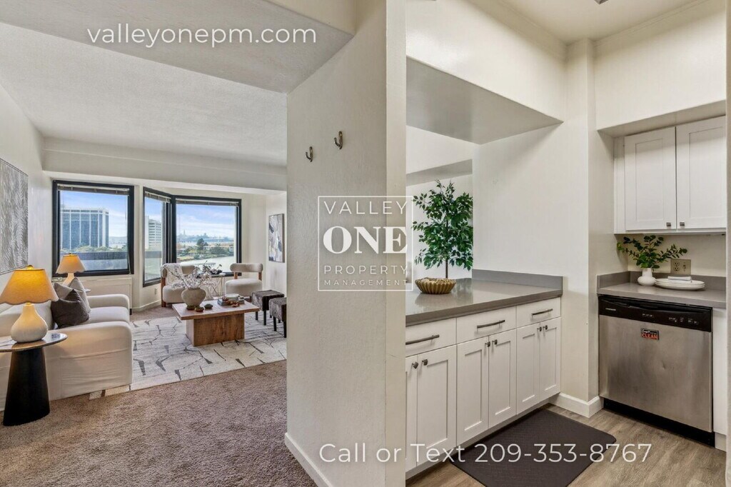 **PLEASE NOTE** Photos show staged (not actual) furniture. Ask about $2495 rate if unfurnished. Wake up to sweeping 8th-floor views of the SF skyline and bay from windows stretching across the entire exterior wall and your own private balcony. Feeling active? Meet up in the remodeled community lounge, then head to the fully equipped fitness center that will make your gym membership obsolete, swim in the pool, or hit the tennis courts, or just bask in the sauna. Take your dog for a quick loop around the private community park, then return to your spacious 857 sq ft unit to prep for greatness for the day ahead. Later on, cross the street to explore a new world cuisine at the famous Emeryville Public Market or catch the free Emery-Go-Round to dinner, drinks, or shopping at Bay Street. AC Transit stops across the street for easy BART and direct SF access, or walk 0.4 mi to Amtrak. Do you really even need that car? You still have your own assigned garage parking spot and bike cage though, just in case. 24/7 security, unbeatable amenities, and life with a view—what's not to like? STANDARD TERMS: Application required for each adult occupant, approval criteria available at (). PET FRIENDLY! Terms apply, review pet policy on our website or ask for details. ALL applicants, regardless of pet status, must undergo pet screening process (). Required Resident Benefits Package includes tenant liability insurance, credit reporting of your on-time payments to boost your credit score, and monthly discounts, points and rewards, and more--ask for additional details. Minimum $2500 security deposit. One time lease prep fee $200. If applicable, monthly pet service fees may apply. Tenant responsible for all utilities unless otherwise noted. COMMUNITY AMENITIES: 24/7 security; remodeled resident lounge with bay views; spacious gym with pro-level equipment; changing rooms with lockers, showers, sauna; package reception; commercial washers and dryers on every floor; heated pool and jacuzzi; community park; tennis courts.Quartz Countertops Vinyl Plank