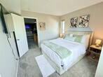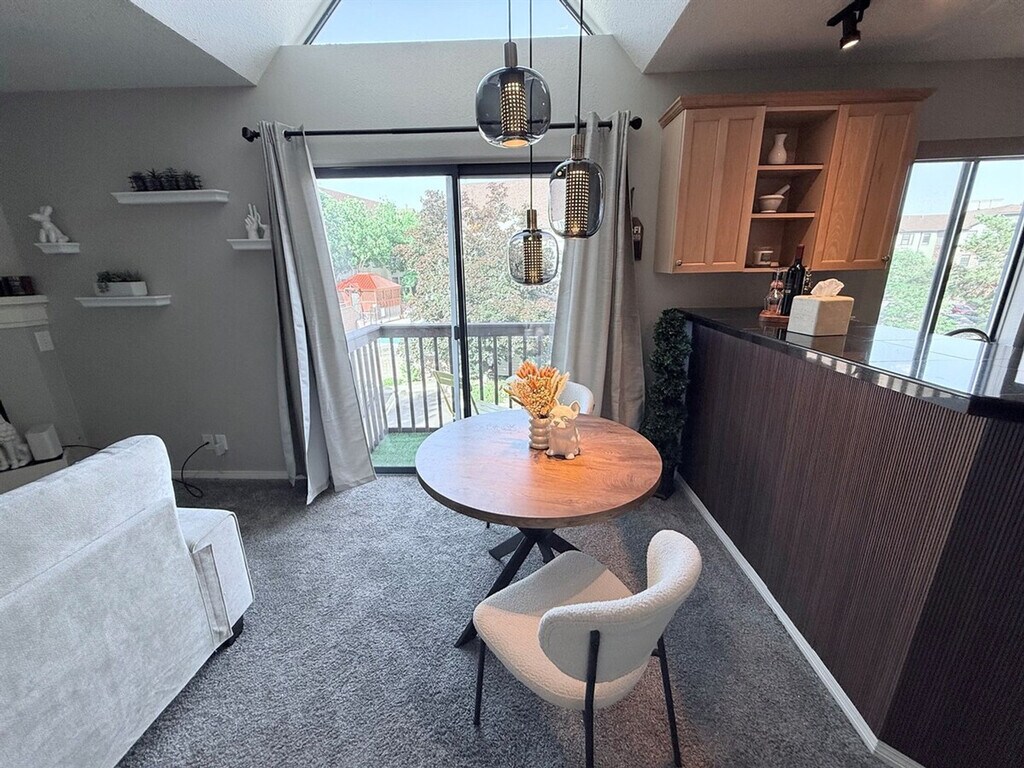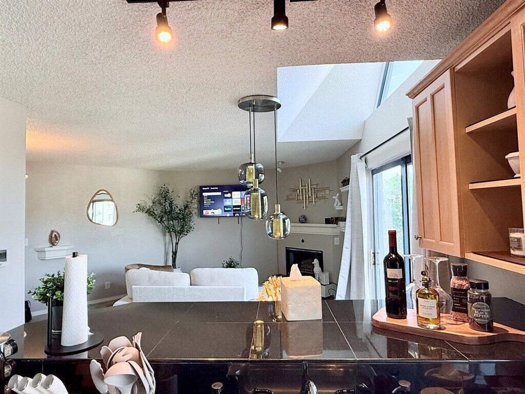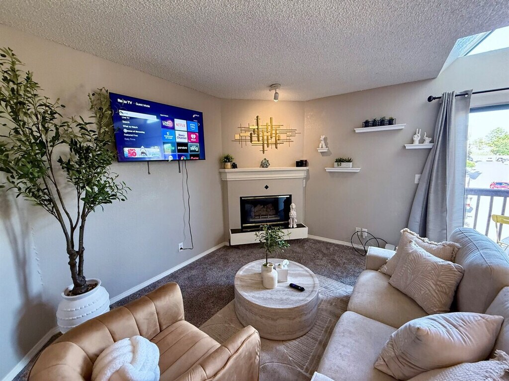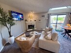 Feel at home in this modern 1-bedroom condo, located a couple of minutes from the Denver Tech Center and state parks. This 3rd-floor unit is accessible by stairs only, as there is no elevator. Upon entry, you'll be greeted with a large, open space featuring a comfortable sofa, cozy fireplace, and big-screen TV. The open kitchen is well stocked and includes counter dining for two. The bedroom offers a luxury queen mattress and comfortable linens, and you’ll find a large closet area. The bathroom has a tub and shower combo, and there is private laundry in the unit. The sliding door and vaulted ceilings let in plenty of light and fresh air, giving the space an airy feel. Enjoy access to the communal seasonal pool and gym. This is a perfect location for your Colorado vacation or work travel needs. Must be able to climb stairs. [SI]