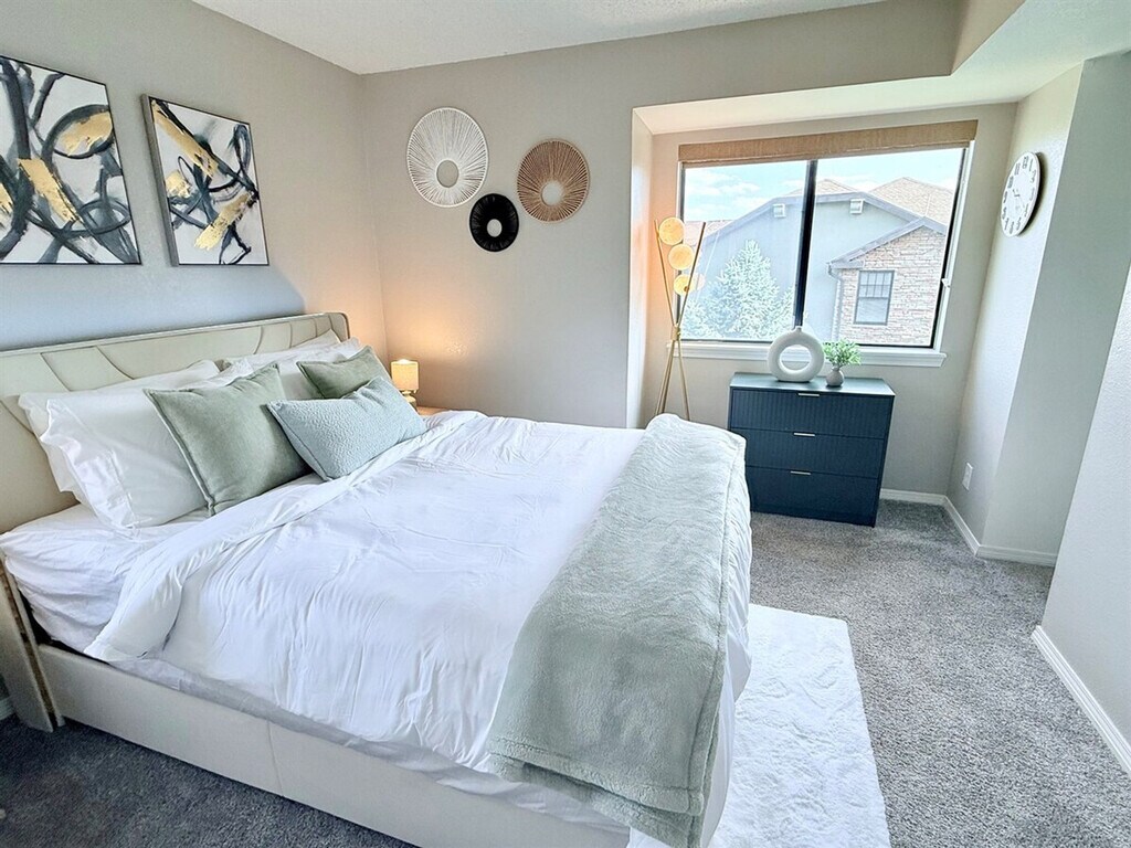 Feel at home in this modern 2-bedroom, 2-bathroom condo just outside Denver. Located on the top floor (third floor) of a building with no elevator, this unit offers extra peace and privacy. Please note that you must be able to climb stairs to access this unit. This stylish condo offers a sleek, clean design with tiled floors throughout and plenty of natural light. The living room is perfect for relaxing with an oversized smart TV, while each bedroom features its own large smart TV. The fully stocked kitchen has everything you need to cook at home, complete with updated appliances and dining space for four. With keyless entry and fast Wi-Fi, this space makes traveling easy and stress-free. Guests also have access to on-site amenities, including outdoor seating areas, propane grills, a fitness center and a seasonal pool. Easy parking is available, and there is quick access to highways and public transport. Prime location: this condo is 10 minutes from Fiddler’s Green, 20–30 minutes from Downtown Denver and 30 minutes from Red Rocks. Explore Cherry Creek State Park, nearby lakes, Rocky Mountain National Park, and countless hiking, biking, and mountain adventures. This is a quiet and private top-floor unit with no noise above. [SI]