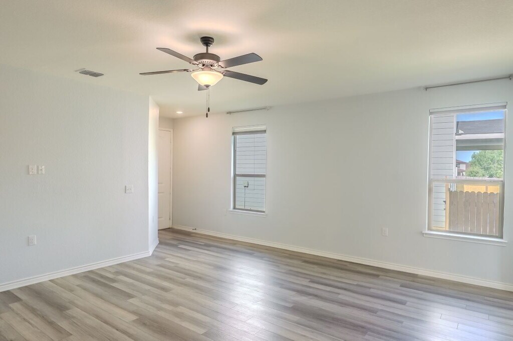 Welcome to this 3-bedroom, 2-bathroom rental home on the city's northeast side of town that is designed to provide both comfort and convenience, ensuring an exceptional living experience. As you enter the home, you are greeted by a generous living area, complete with large windows that bathe the space in natural light. The central air conditioning and ceiling fans throughout the home ensures a pleasant and comfortable environment year-round. A well-appointed kitchen with tiled floors, ample storage, a pantry and a breakfast bar, perfect for casual meals. The primary bedroom is a private oasis, complete with a spacious walk-in closet for all your storage needs with an en-suite bathroom, providing a stylish and functional space. The additional two bedrooms deliver functionality and privacy with ample closet space. Enjoy private moments in the backyard which is completely surrounded by a privacy fence to include an outdoor picnic table for those quite late night conversations. Located in the Northeast Crossing Neighborhood, this rental home offers proximity to shopping centers, restaurants and parks. Just 15 minutes from Fort Sam Houston and Randolph AFB, schedule your showing today before this home is practically gone in an instant and rent with RentSpired.