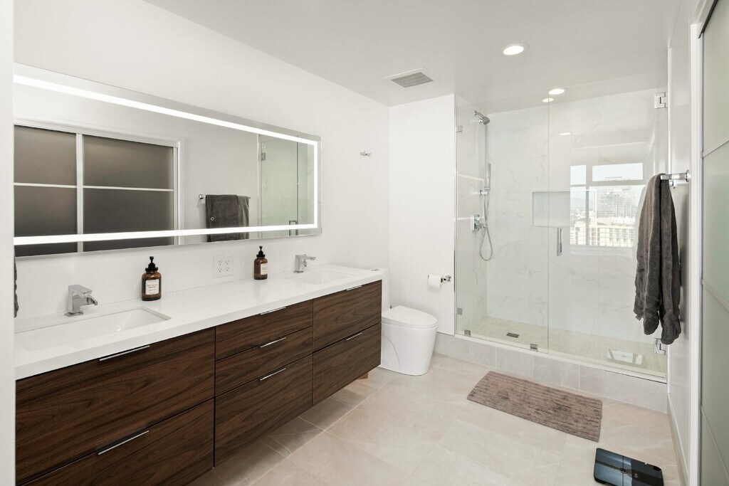 Experience sophisticated downtown living in this beautifully modern upscale furnished condo on the 17th floor of the prestigious Renaissance building. Featuring designer furnishings, original artwork, and modern finishes, the open-concept layout seamlessly connects the kitchen, living, and dining areas. Enjoy breathtaking views from the private balcony, stretching from the Coronado Bridge to planes gliding into San Diego International Airport, or relax with ocean breezes flowing through the sliding dining room windows. The master suite offers a serene retreat with a walk-in closet and dual sinks, while the second bedroom boasts double sinks and ample closet space. Additional perks include two coveted side-by-side parking spaces, integrated smart home with nest thermostat, motorized shades and smart appliances. Renaissance amenities include a large pool, spa, fitness center, community kitchen, meeting spaces, and expansive BBQ areas perfect for entertaining. Located on one of Downtown's most convenient blocks, you're just steps from the harbor, public transportation, excellent restaurants, shopping, and Ralph's Signature grocery store. Enjoy live music at the nearby Rady Shell at Jacobs Park, home of the San Diego Symphony, or explore future innovations at The Research and Development District (The RaDD) and the sustainable, tech-focused Campus at Horton. Renaissance offers casual elegance and sophisticated urban convenience, all within easy reach of San Diego's vibrant downtown life.