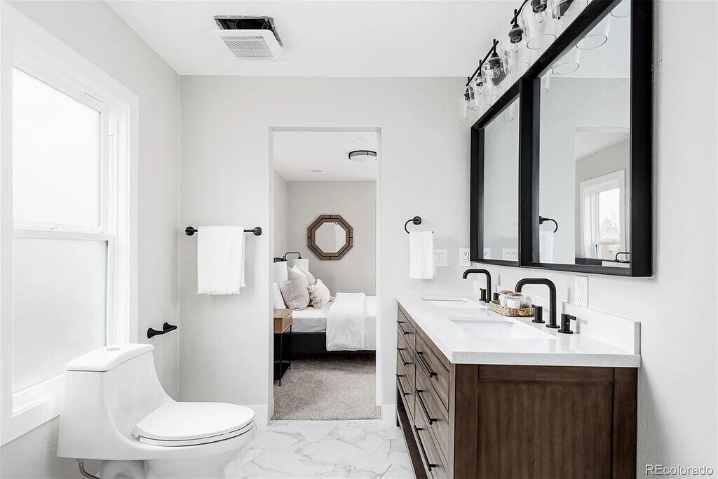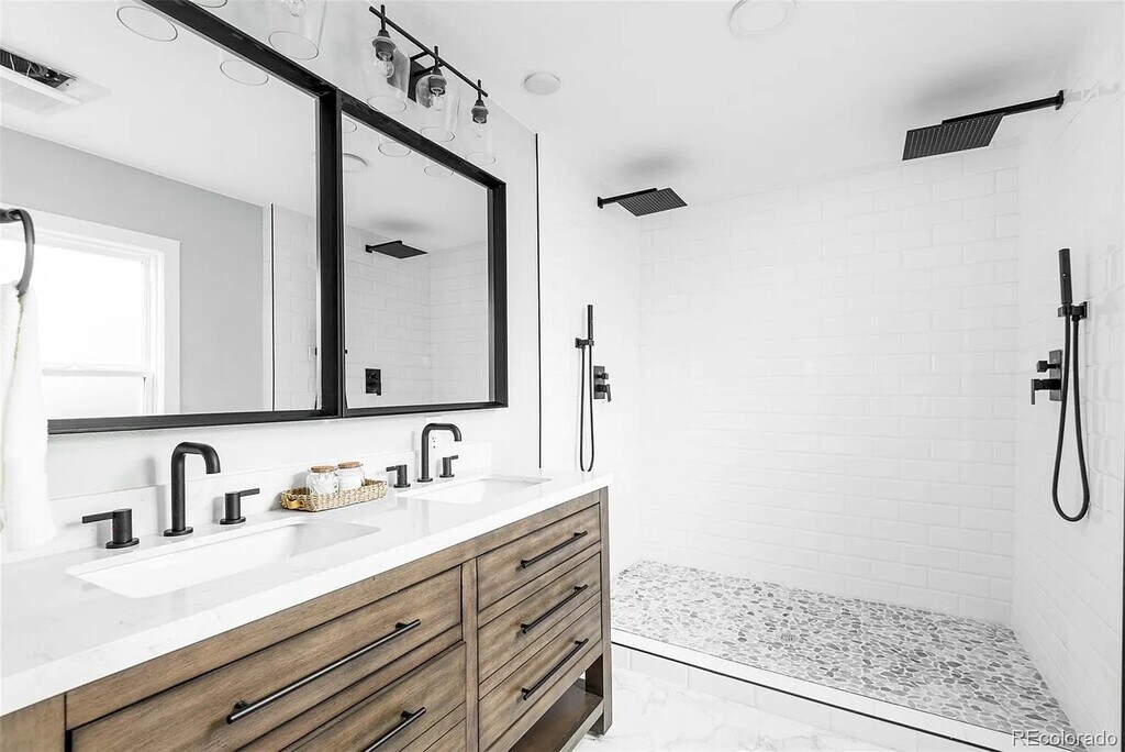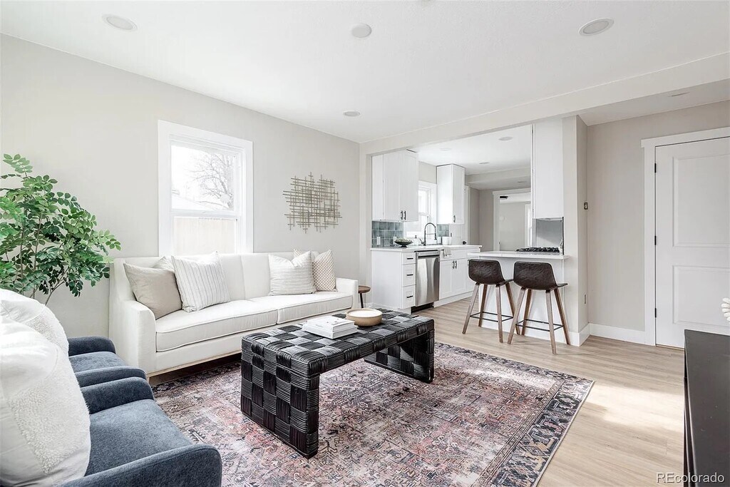 Fully renovated in 2023, this 3 bed, 2 bath home blends modern comfort with an unbeatable location. The kitchen features new stainless steel appliances, a gas range, and a walk-in pantry. The primary bedroom offers a spa like en-suite with a dual head rainfall shower and double vanity. A large secondary bedroom provides extra space, while the third bedroom is perfect for an office or guest room. The secondary bathroom is a full bath with a shower/tub combo. Enjoy the outdoors with a rare large lot, a fully fenced backyard, professional landscaping, new concrete patio and mountain views. The home also includes in-unit washer + dryer plus an unfinished basement, perfect for storage, seasonal items, or a home gym setup. A driveway and attached carport will keep your vehicles off the street. Located just off 6th Avenue, you'll be downtown, at Sloan's Lake, or Mile High Stadium in 5 minutes. 12 month lease preferred. Owner pays for water, sewer, trash. Tenant to cover electric, gas, cable/wifi. Small dogs ( 40 pounds) will be considered. No cats. No smoking allowed Property is leased unfurnished. Staged furniture is not included.