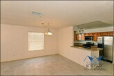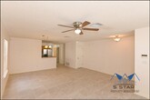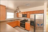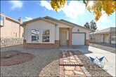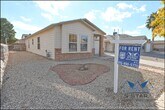 A clean-lined facade and desert landscaping set the tone for this efficient 3-bedroom,2-bath single-story home. Inside,an open living-dining area spans durable tile floors,keeping upkeep simple and the flow effortless. The kitchen stays connected with a bar opening,ample cabinetry,and stainless refrigerator alongside range,microwave,and dishwasher. A cozy fireplace anchors the main living space for cooler evenings,while refrigerated cooling supports comfort when temperatures climb. The primary bedroom is positioned for privacy with an en-suite bath,and two additional bedrooms provide flexible space for a studio,office,or guest room. Laundry is streamlined with included washer and dryer. A spacious private backyard invites outdoor seating and weekend unwinding,plus the bonus of an attached garage. Close to Rio Plaza and convenient Doniphan-area routes for quick errands. Deposit-Free Renting service to Obligo qualified renters,fees may apply.