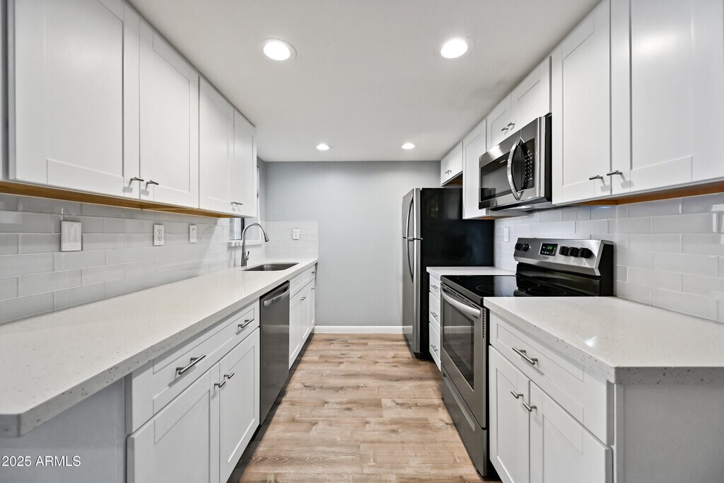 Gorgeous 2 bedroom,2 bathroom second floor unit which is fully remodeled with upgraded,high-end finishes. Newer stainless steel appliances including dishwasher,shaker kitchen cabinets and quartz counter-tops. Home has 2 primary bedrooms with their own full bathrooms .Walk-In closet in main primary bedroom. Washer and Dryer in Unit. Storage on the patio and lots of storage inside. Community is well kept with Pool and spa and outdoor grills. Property is located minutes from Old Town Scottsdale,numerous golf courses,shopping,restaurants,schools,easy access to the 101. This property is move-in ready. Water,sewer and trash is included. Tour Today!