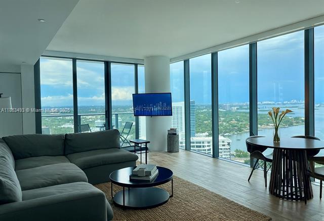 Experience the best of waterfront living in this beautifully appointed corner unit. This fully furnished, spacious One bedroom apartment also features a reading area, perfect for work or relaxation. Thoughtfully designed with meticulous attention to detail, the home boasts custom closet doors, elegant wallpaper accents, a built-in custom closet, and much more. 1 parking space. Residents enjoy access to premier building amenities, including a state-of-the-art fitness center, sparkling pool, and 24-hour concierge service, ensuring comfort and convenience at every turn. Unit will be available to rent only from October 1, 2025 to July 31, 2026.