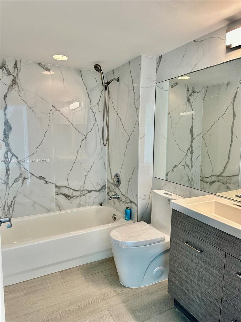 Beautiful and spacious 3-bedroom unit at The Floridian, offering stunning direct bay views and elegant marble flooring throughout. This residence features an upgraded kitchen and bathrooms, generous closet space, a private balcony, and a full-size washer and dryer. Includes two covered parking space in a full-service building with top-tier amenities. This unit is currently tenant-occupied and will be available starting December 2025.