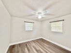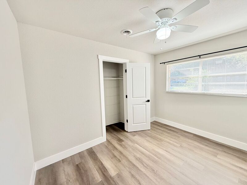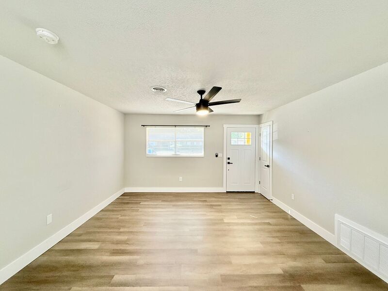 View In 3D: This 3-bedroom, 2-bath home offers 1,100 square feet of comfortable living space with luxury vinyl plank flooring throughout. The kitchen features ample white cabinetry, butcher block countertops, a deep-basin sink, an eat-in nook, and stainless steel appliances, including a refrigerator, flat-top range/oven, microwave, and dishwasher. All three bedrooms are equipped with ceiling fans for added comfort. The half bath includes a single vanity and convenient linen storage shelves, while the full bath offers a single vanity and a tub/shower combo. Additional highlights include a 1-car garage, a concrete back patio, and a fully fenced backyard.