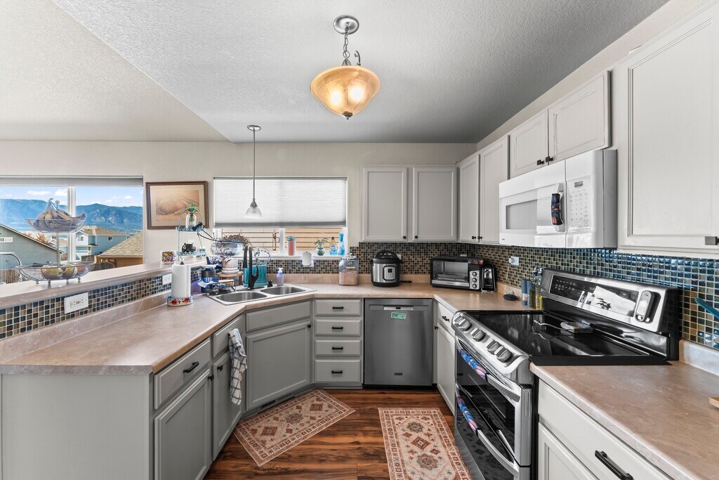 **Spacious 4-Bedroom Home with Bonus Room, 3-Car Garage, and Pikes Peak Views** **6531 Passing Sky Dr | 4 Bedrooms | 3.5 Bathrooms | 2,240 Sq Ft** Welcome to this beautiful and expansive 4-bedroom, 3.5-bathroom home offering modern updates, flexible living space, and stunning views of Pikes Peak. With approximately 2,240 square feet of living space and newly installed hardwood flooring throughout the main and upper levels, this home combines comfort, style, and functionality. The open-concept main level features bright, inviting living areas ideal for entertaining or everyday living. The spacious living room flows seamlessly into the kitchen and dining areas, creating a warm and welcoming atmosphere. Upstairs, you will find three generously sized bedrooms, including a primary suite with a large walk-in closet, along with two full bathrooms. The finished basement adds exceptional versatility and includes a large bonus room, an additional bedroom, a full bathroom, a laundry room, and ample storage space—perfect for a guest suite, home office, gym, or media room. Additional features include: * 3-car tandem garage with ample storage * Fully fenced backyard, ideal for pets, children, and outdoor use * Washer and dryer hookups * Ceiling fans, heating, and cable readiness * Sprinkler system with **provided seasonal spring activation and fall blowout service** * Well-maintained exterior and designated storage areas Enjoy the best of Colorado living with peaceful mountain views, while still being conveniently located near schools, parks, and local amenities. Need a temporary place while searching for your forever home? Short-term leases are available, with options as short as **3 months**. **Pets are welcome.**