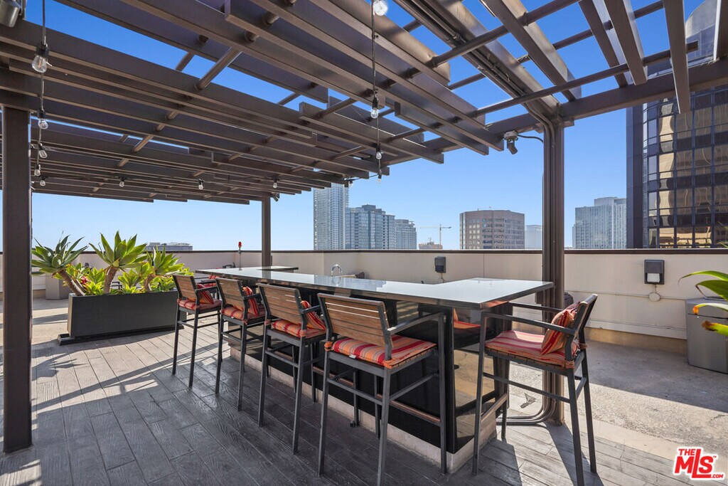 Stunning corner 2b/2b high-rise condo with dramatic floor to ceiling windows and panoramic views of Downtown Los Angeles from the 12th floor. This rare corner unit features nearly 1250sf of living space, tall 11-foot ceilings and upgraded hardwood floors throughout. Fully equipped with brand new Washer & Dryer, modern kitchen with stainless appliances and breakfast bar. Primary open plan bedroom area (or office) has large windows, an ensuite bathroom with dual sinks and a massive closet. Second bedroom is fully enclosed with a private bathroom and a large closet. There are custom roller shades as well as blackout curtains throughout the entire unit, and upgraded lighting. Includes 1 parking space in the building. City living at its finest with amenities including 24/7 staffed front desk, concierge service, gym, lounge/game room, and roof deck with BBQ, fire pit, and skyline views. Located in the heart of the Financial District of DTLA, within blocks of Whole Foods, 7th & Fig, The Bloc, LA Athletic Club, Hotel Figueroa, Wilshire Grand, Crypto Arena, FIDM, LA Live, Grand Central Market, The Broad, Walt Disney Concert Hall, The Conrad, Grand Park, and more. Rent includes water, trash, gas. MLS# 25590187