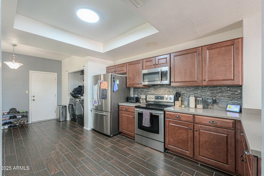 The only thing missing is you! Welcome home to this beautifully updated 2-bedroom,2-bath condo in Glendale. Enjoy fresh neutral paint throughout,stylish vinyl flooring in the main living areas,and a fully remodeled kitchen (2024) featuring new stainless steel appliances. Both bathrooms have been tastefully upgraded,and the home includes dual-pane windows for energy efficiency. Relax on your private balcony or take advantage of the outdoor storage for extra space. A new AC unit (2023) keeps you cool year-round,and a brand-new mini split in the primary suite will be installed on 11/16 for added comfort. Conveniently located near all major Phoenix freeways,this condo offers an easy commute and access to shopping,dining,and entertainment. Water,sewer,and trash are included
