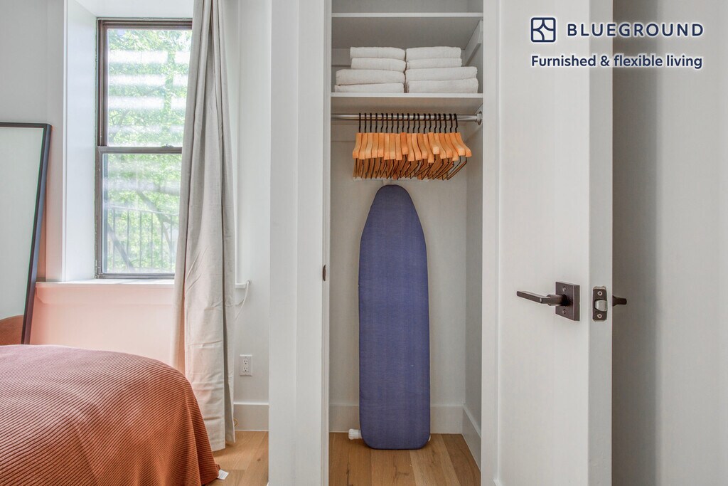Discover the best of New York, with this one bedroom apartment in Alphabet City. It’ll be easy to simply show up and start living in this furnished apartment with its fully equipped kitchen, living room, and our dedicated, on-the-ground support. (ID #NYC1532) The advertised rate of $4,810/month is the lowest available price, based on a 11 month(s) and 29 day(s) stay with a move-in date of January 30, 2026. Rates vary depending on the duration of stay, season, and other parameters. For exact pricing and additional pricing components, please visit our website and enter your desired move-in and move-out dates. The rate is applicable when billed upfront; it can be higher if billed in multiple payments. Brokers are welcome to reach out. Were you looking for an unfurnished lease? Try Blueground instead and upgrade from unfurnished to furnished living: - Furnished at rates comparable to unfurnished - No setup or furniture costs - save thousands - Move-in ready - save time, just bring your suitcase Designed with you in mind Gorgeous furniture, fully equipped kitchen, smart TV, and a premium wireless speaker are just a few of the amenities you’ll find inside this one bedroom apartment. Ideally located in New York, you’ll find a lot to love outside as well. When you’re ready to relax, you’ll be happy to discover every Blueground bedroom comes with superior quality mattresses, luxury linens, and cozy towels. We handle everything so you can simply show up and start living. This apartment also offers in-apartment laundry. Sleeping arrangements Queen Bed, 63in/160cm Amenities Building amenities unique to this one bedroom apartment include an on-site: - Dryer - Elevator - Game room - Washing machine - Lounge - Pets allowed Arrival and ongoing support The entire apartment is yours to enjoy! Throughout your stay, you’ll have access to our Client Experience team through the Blueground App. You can schedule additional cleanings, submit maintenance requests, and view our neighborhood recommendations with just a few taps. We’ll share all details upon confirmation of your stay. Other things to note Building amenities may have an extra cost. This Blueground apartment has flexible lease options, allowing you to book it for one month, a year, or more. Pets are welcome, though weight limits and breed restrictions apply and may incur fees. Brokes CYOF. We take great pride in ensuring every photo displayed is shot in our own units with our actual furnishings. That said, we regularly refresh our decor and furniture arrangement, which may differ from what’s pictured. [SI]