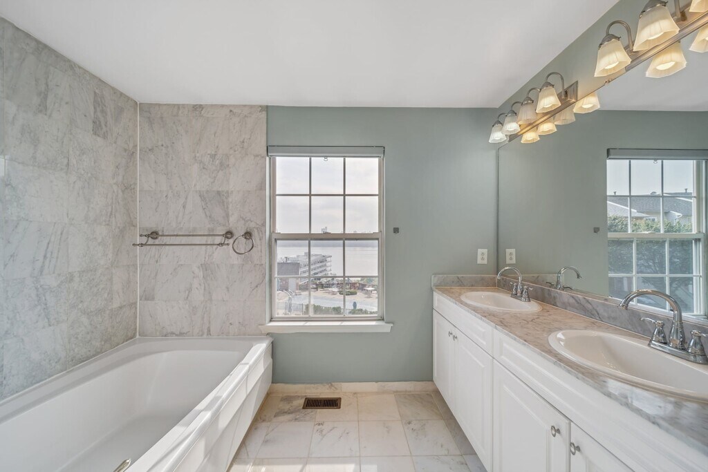 3-Bedroom, 2.5-Bathroom Duplex Townhouse with Direct Hudson River and NYC Views. This spacious townhouse has it all: stunning views, spacious rooms, and convenient location.The first floor features a modern kitchen with stainless steel appliances, a large living room and a dining area with hardwood floors. The second floor has two bedrooms, one full bathroom, and a master bedroom with a walk-in closet and private bathroom. The townhouse also has a large balcony and private patio, as well as one garage parking space with digital entrance and two additional parking spaces in the driveway.The townhouse is located just a block away from NJ Transit buses, mini buses, and a shuttle to the ferry. It is also within walking distance of a beautiful Hudson Park with tennis courts and more. And just a couple of blocks away is Edgewater, a vibrant waterfront community with shops, restaurants, and bars. Call today to schedule a viewing!