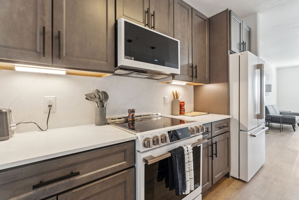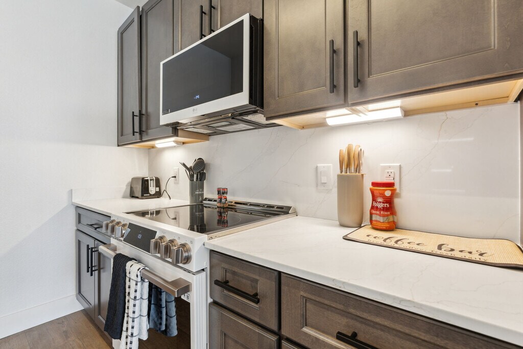 The advertised rate of $2,486/month is the lowest available price, based on a 30 day(s) stay with a move-in date of July 3, 2026. Rates vary depending on the duration of stay, season, and other parameters. For exact pricing and additional pricing components, please visit our website and enter your desired move-in and move-out dates. The rate is applicable when billed upfront; it can be higher if billed in multiple payments. Feel at home in this newly built condo in Glendale, just steps away from the stadium and the Westgate entertainment area. This garden-style unit requires climbing one to two flights of stairs; ground floor units are available upon request. This condo is equipped with quartz countertops, stainless steel appliances, a fully equipped kitchen, 100mbps+ internet, modern decor, a Smart-TV with streaming apps installed, and a washer/dryer. Complimentary coffee is provided. Enjoy access to a resort-style heated pool, a jacuzzi hot tub, a fitness center, a large outdoor fireplace, a BBQ area, an arcade, and a patio. Pets are welcome with a fee of $100-300 based on stay length. All pets must be on a leash when outside on the property. Ideally located in the Westgate entertainment area of Glendale, this condo is a quick drive or Uber/Lyft ride away from various attractions. Enjoy live music, movies, football, and dining all in one place, just across the street from the building. Smoking of any kind is not permitted within or outside of this condo, including balconies, patios, or common and/or parking areas. Any sign of smoking is a violation of the stay agreement, which may result in immediate termination and recovery fees beginning at $500. Removing smoke detectors incurs a $500 penalty, and lost key fobs incur a $200 penalty. No outside guests are allowed without permission. Quiet hours are observed from 9pm-8am each day, and guests must not disturb neighbors at any time during the stay. Check-in is at 4 PM, and check-out is at 11 AM, with a late fee of $75 per hour. A pet fee may be charged for guests traveling with an emotional support animal. The presence of emotional support animals can be declined. Guests will be asked to provide a copy of their official government-issued photo ID, confirm their contact information, and pass through a verification portal; in some instances, a criminal background check may be required. No weapons or drugs are allowed; police will be called for violating this rule. Maximum of two pets allowed, with a combined weight limit of 40lbs; Pit Bulls and Bull Mastiffs or similar breeds are not permitted. [SI]