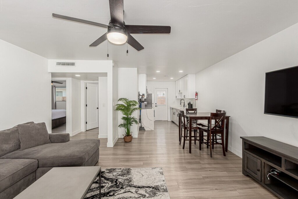 Welcome to this beautifully renovated fourplex,where timeless charm meets modern comfort. Fully updated in 2022,the property is comprised of four spacious two-bedroom,one-bathroom residenceseach available for individual lease. Inside,every unit is thoughtfully designed for everyday living. Kitchens feature stainless steel appliances,ample cabinetry,and stylish finishes. Bathrooms are updated with designer tile and modern fixtures,while in-unit washers and dryers provide ultimate convenience. Each residence also enjoys a private patio,opening to a lush grassy courtyard shaded by mature trees. Additional comforts include covered parking and private exterior storage. Furnished or unfurnished rental options are available,giving residents the flexibility to move right in or personalize their space. This property places you within walking or biking distance to some of the city's best shopping,dining,nightlife,and entertainment. Enjoy proximity to Scottsdale Fashion Square,Scottsdale Waterfront,and renowned art galleries along Main Street and Marshall Way. Outdoor enthusiasts will appreciate easy access to the Arizona Canal Trail,Camelback Mountain,and Scottsdale's greenbelt parks. Daily conveniences are nearby as well,including grocery stores,fitness studios,coffee shops,and local favorites along Indian School Road and Scottsdale Road. The location also offers quick access to Loop 101,making commutes across the Valley simple and efficient. This property blends the comforts of a modern home with the lifestyle of one of Scottsdale's most vibrant neighborhoods ideal for anyone seeking a long-term rental in a highly desirable location.