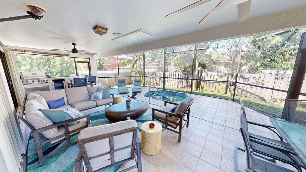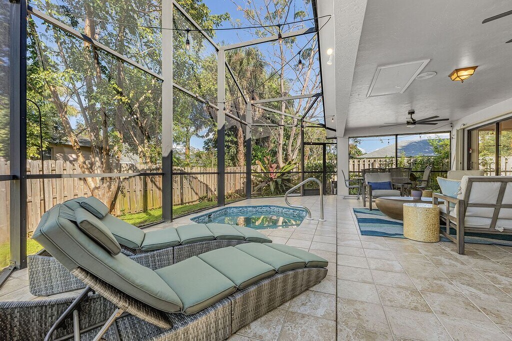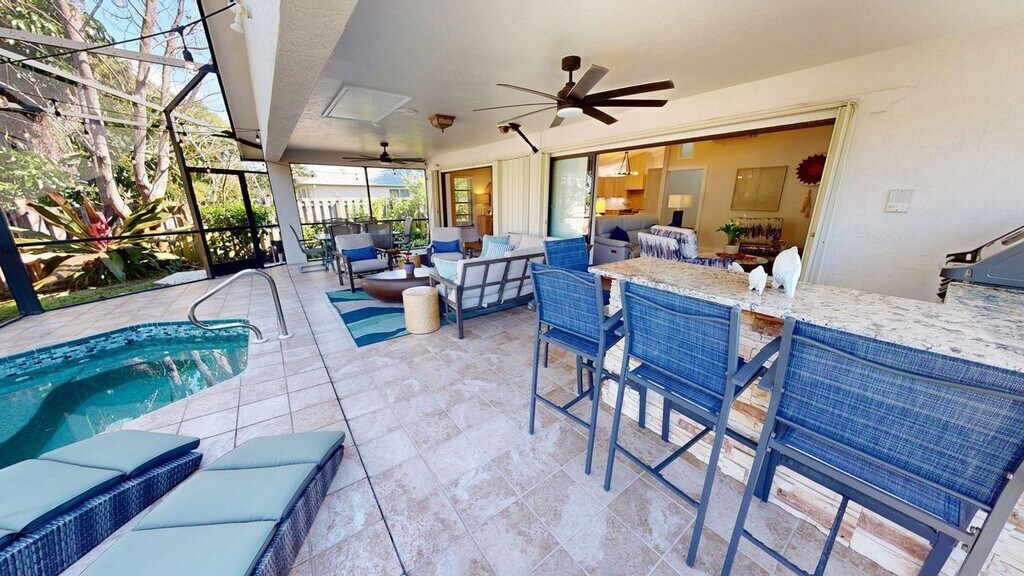 Discover your ultimate Gulf Coast escape at this spacious tropical retreat in the heart of North Naples highly sought-after Naples Park neighborhood, high and dry location, and just 2 short blocks (or a leisurely 20-minute stroll) from the iconic white-sandy shores of Vanderbilt Beach and the pristine beauty of Delnor-Wiggins Pass State Park! Nestled minutes from the excitement of Mercato's trendy dining and shopping, world-class 5th Avenue South, The Ritz-Carlton Naples, Waterside Shops, Coconut Point, Miromar Outlets, pickleball/tennis, golf nearby and endless Southwest Florida adventures. Step inside this beautifully furnished, open-concept single-family home boasting modern finishes and thoughtful updates throughout. The chef-inspired kitchen shines with sleek quartz countertops, premium stainless-steel appliances, and abundant storage—perfect for preparing seaside feasts or evening cocktails. Host up to 11 guests in comfort across 4 generously sized bedrooms: one luxurious king in the primary suite with a walk-in closet and private en-suite bath, plus four queen beds with a twin trundle for flexible sleeping arrangements and full-size washer & dryer. Every bedroom features its own Roku/YouTube TV for relaxed evenings. Three beautifully updated full baths with elegant tile showers ensure convenience for the whole group. Slide open the doors to your private outdoor sanctuary: an expansive 700 sq ft screened lanai (407 sq ft covered) ideal for morning coffee with ocean breezes, sunset cocktails, or family BBQs on the gas grill. Step into the refreshing plunge pool, or crank up the heat and unwind in the jetted hot tub. Gather at the raised outdoor conversation bar complete with gas grill and wine fridge—your personal slice of paradise awaits! Don't miss this rare chance to live the Naples dream—steps from world-famous beaches, surrounded by luxury and convenience, and ready for unforgettable vacations. Your tropical getaway starts here—book now and make memories in paradise!