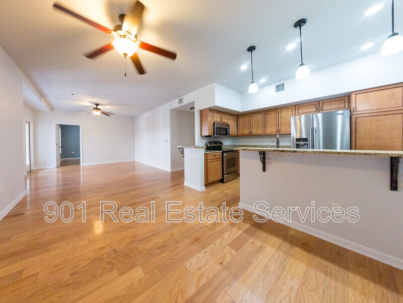 This 2 bedroom, 2 bathroom condo is located on the 5th floor of State Place, a gated community on the south end of downtown Memphis. The spacious layout includes a large living room with beautiful hardwood floors and an open-concept kitchen featuring high-end stainless steel appliances, granite countertops, and an adjacent laundry room with a full-size washer and dryer. A flexible bonus space can be used as a home office, den, or additional seating area and opens to a large private balcony. The split-bedroom floor plan offers privacy and convenience. The primary suite includes a generous dressing closet and a luxurious en suite bathroom with an oversized shower, garden tub, and double vanity. This unit also includes a private indoor storage closet located on the same floor. Pet friendly! State Place offers residents gated access, a community pool, fitness center, dog park, and more, all just blocks from the new Malco theater and minutes from the expressway, restaurants, and downtown entertainment. SCHEDULE A SHOWING: Professionally managed by 901 Real Estate Services *Additional fees may apply. Please see below. Some photos may be virtually staged.* *Typical fees for approved applicants, not including security deposit: one-time admin fee of $250; one-time pet fee & monthly pet rent, determined by PetScreening per pet; any fees associated with specific communities or buildings - please ask the Property Manager for more information.* **Avoid scams: We do not post our properties on Facebook Marketplace or Craigslist and will never ask you to pay anything through CashApp, Zelle, or Venmo.** Amenities: elevator, fitness center, granite countertops, storage unit, gated dog park, gated community, private balcony, central heat & air, ceiling fan(s), community pool, dressing closet(s), parking - 1 garage reserved space
