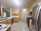 Beautiful Summerlin townhome, 3 bed, 2.5 bath, on 1st floor. Family room w/ceramic tile floors, two tone paint, ceiling fan & light & french doors to patio. Kitchen w/breakfast bar, granite counters, maple cabinets, glass backsplash, SS appliances, ceramic tile floors, two tone paint & pantry. Dining room w/ceramic tile floors, two tone open to kitchen. Primary bedroom w/ceiling fan/light, ceramic tile floors, two tone paint, glass slider to patio. Primary bath w/dual sinks w/make up counter, granite counters, maple cabinets, oversized walk in shower w/tile surround, ceramic tile floors, two tone paint & walk in closet. Bed 2 w/own bath, ceiling fan/light, ceramic tile floors, two tone paint, walk in closet, bath w/granite counters, maple cabinets, tub/shower combo with full tile surround. Bed 3 w/french doors, ceiling fan & light, ceramic tile floors, two tone paint & closet. Bath 3 w/granite counters, maple counters, tub/shower combo. Laundry off kitchen. Two covered patios.