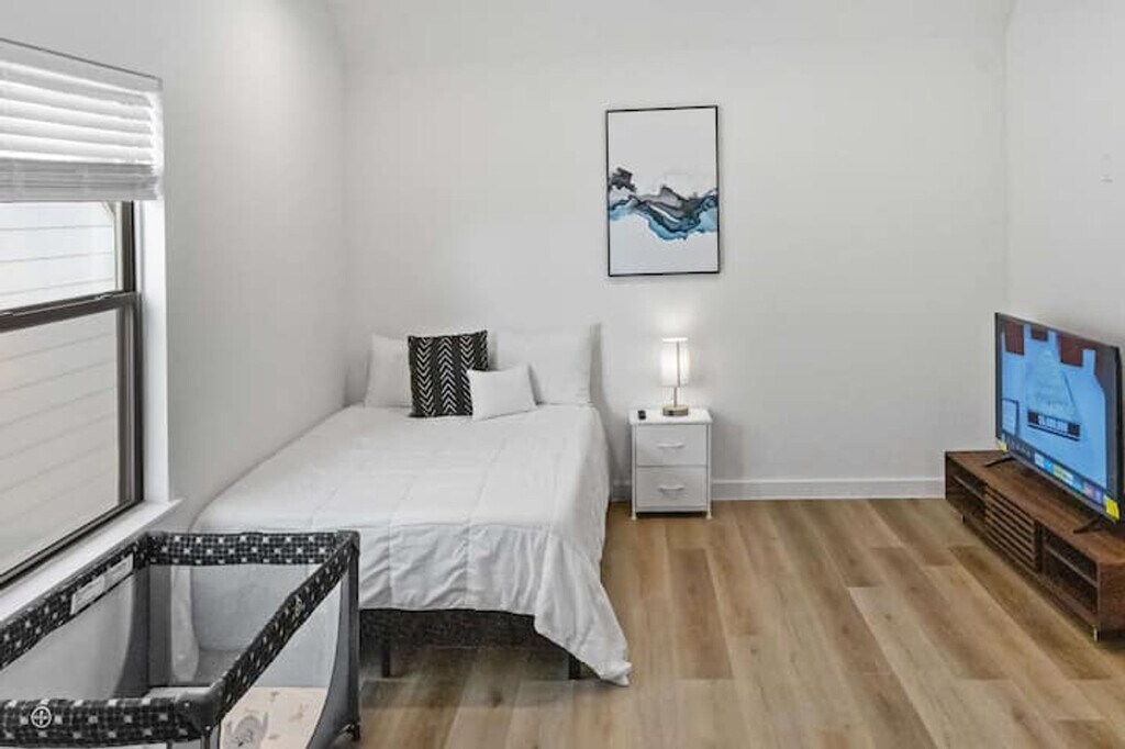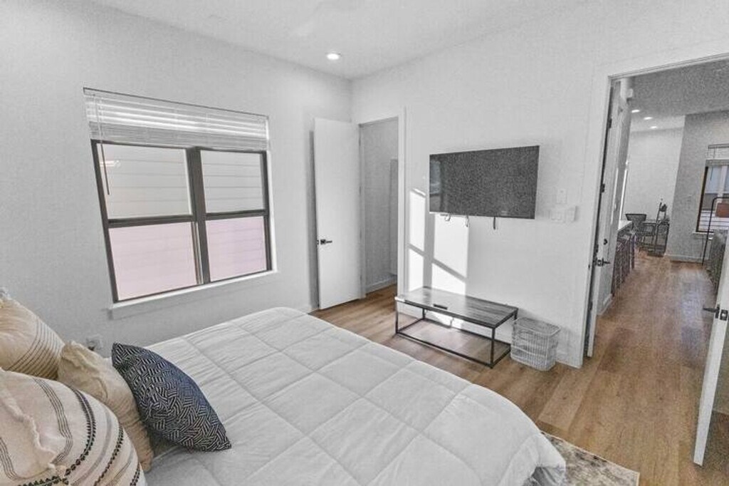 Welcome to this stylish 3-story townhome located in a secure gated community, just minutes from the Texas Medical Center, Downtown Houston, and other top attractions. Perfect for large families, corporate teams, or group getaways, this home offers space, comfort, and privacy, sleeping up to 21 guests across 6 bedrooms and 6.5 bathrooms. The property includes a private balcony, secure gated entry, and garage and street parking. This townhome is designed with comfort and convenience in mind. It features a fully equipped kitchen with stainless steel appliances, cookware, coffee makers, and dishes. All rooms are equipped with smart TVs, and there is a private laundry area for your convenience. The property also offers blazing-fast 1Gbps Wi-Fi, making it ideal for work trips and extended stays. Parking is available with a 4-car indoor garage and free street parking. Cribs are available with mattress only, and extended stays are welcome with discounted monthly rates. Access to Emancipation Park's gym, tennis and basketball courts, and baseball field is available upon request. Located in Houston’s emerging MacGregor neighborhood, this townhome is just minutes from the Texas Medical Center, Downtown, and top universities. While the area is still developing, it’s home to newly built townhomes, nearby parks, and growing amenities. Emancipation Park is just 10 minutes away, offering a gym, tennis and basketball courts, and more. Major attractions, business districts, and airports are easily accessible by car or rideshare. Smoking indoors is strictly prohibited and violations incur a $600 smoke remediation fee. Pets must be approved and an additional fee applies, with unauthorized pets incurring a $500 extra fee. Quiet hours are from 10 PM to 8 AM to respect neighbors and other guests. Early check-in and late check-out may be possible for a fee, and unauthorized late checkouts incur additional charges. Only guests listed in the reservation are allowed overnight, with extra or unauthorized guests incurring additional fees. Events and parties are not allowed unless previously approved, with unauthorized events resulting in a $1000 fine. The townhome offers blazing-fast 1Gbps Wi-Fi, making it remote work-friendly. All rooms have smart TVs, and there is a private laundry area for added convenience during extended stays. [SI]