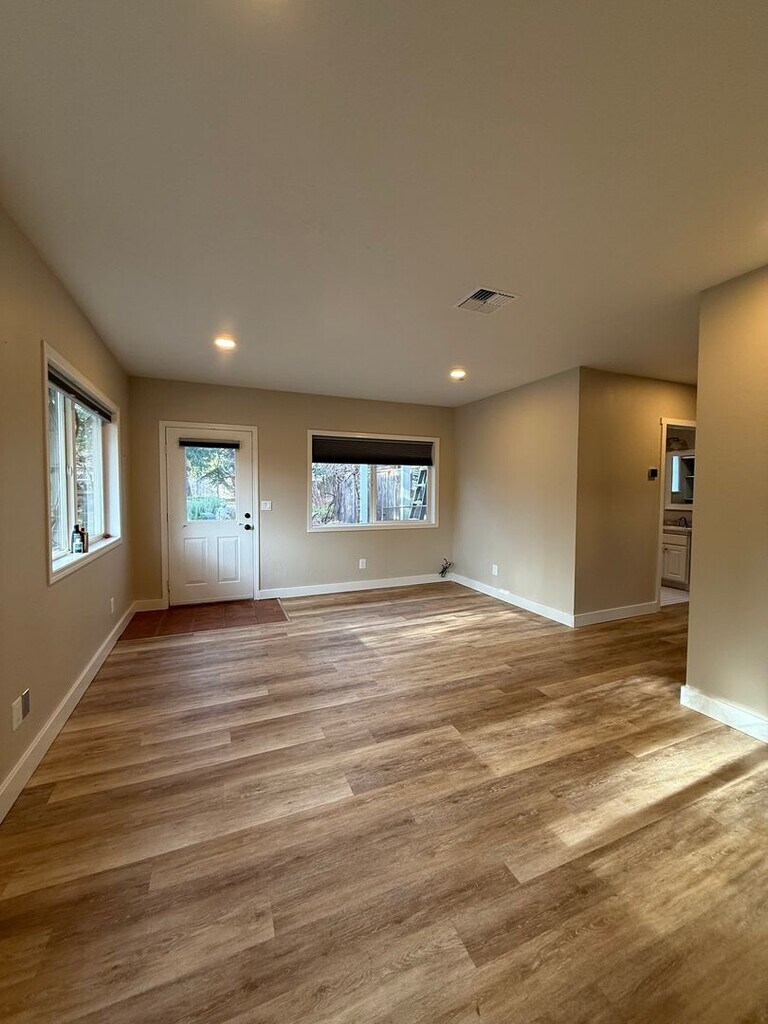 Welcome to this beautiful home on a large, landscaped flag lot, located in the charming city of Ashland, OR. This hidden gem boasts a spacious open floor plan with three bedrooms, including a large ensuite with a walk-in closet, and two full bathrooms. The kitchen is a chef's dream with solid surface countertops and stainless steel appliances. The home also features solid floors throughout and a double vanity for added convenience. The property is a gardener's paradise with raised garden beds, a large garden shed, and a fenced and landscaped backyard. An additional studio/work space and detached two-car garage provides extra room for creativity or storage. The home also includes a water feature and rain barrels, adding to its unique charm. This home is available in March and waiting for you to make it your own. All utilities to be tenant responsibility. Yard care to be owner responsibility. This is a strictly non-smoking property. Sorry, no pets. Applicants to qualify on their own, cosigners not accepted. Attached ADU with private entrance and their own yard is not included. Detached 2 Car Garage, and studio included with main house, lots of yard space! PLEASE DO NOT DISTURB CURRENT RESIDENTS To schedule a tour of this must see home, please call Ashland Property Management LLC at . Online rental applications can be found at