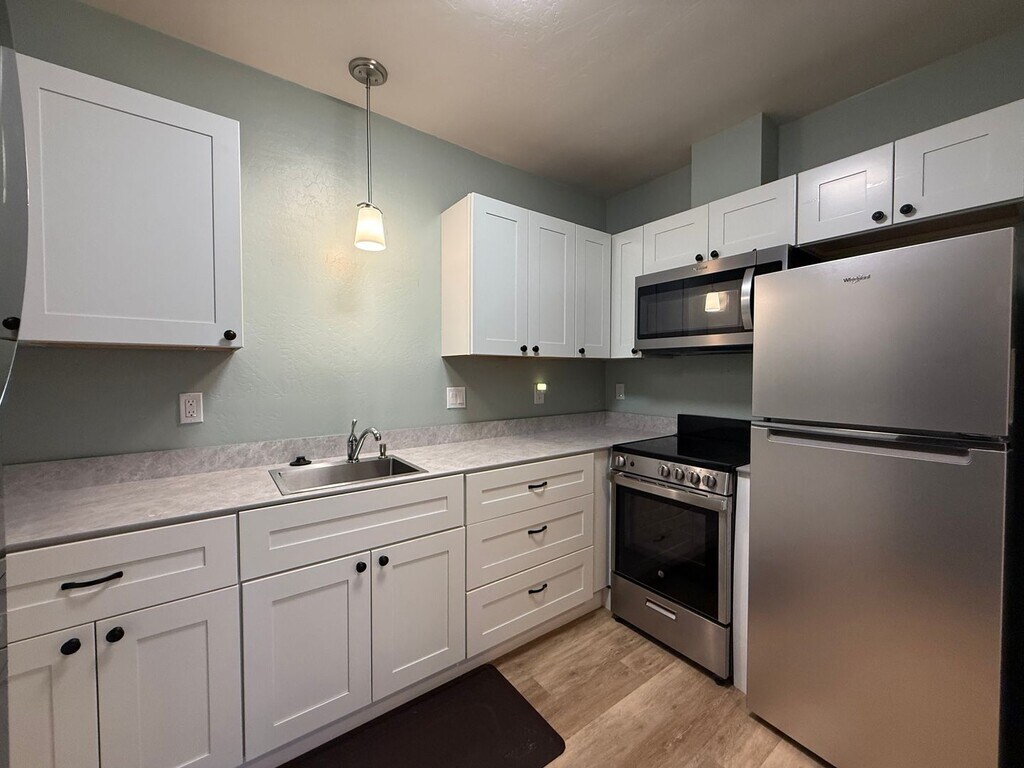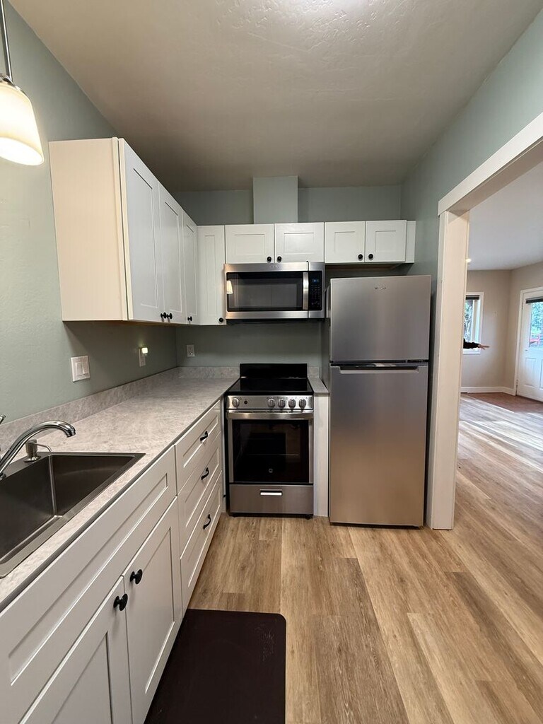 This charming one-bedroom, one-bathroom apartment offers a perfect blend of comfort and convenience. The apartment features a spacious bedroom, a full bathroom with a double vanity, and a large yard with a paved patio, perfect for outdoor relaxation. The compact kitchen has everything you need with new cabinets and stainless steel appliances. The solid floors throughout the apartment add a touch of elegance and are easy to maintain. For your convenience, the apartment comes with a stacked washer and dryer, saving you time and trips to the laundromat. Additionally, the covered off-street parking provides a secure space for your vehicle. This apartment is not just a place to live, but a place to call home. All utilities to be tenant responsibility. Yard care to be owner responsibility. This is a strictly non-smoking property. Attached house, garage, & main house yard not included in this rental. Sorry, no pets. Applicants to qualify on their own, cosigners not accepted. To learn more or schedule a showing of this apartment, please call Ashland Property Management LLC at . Online rental applications can be found at