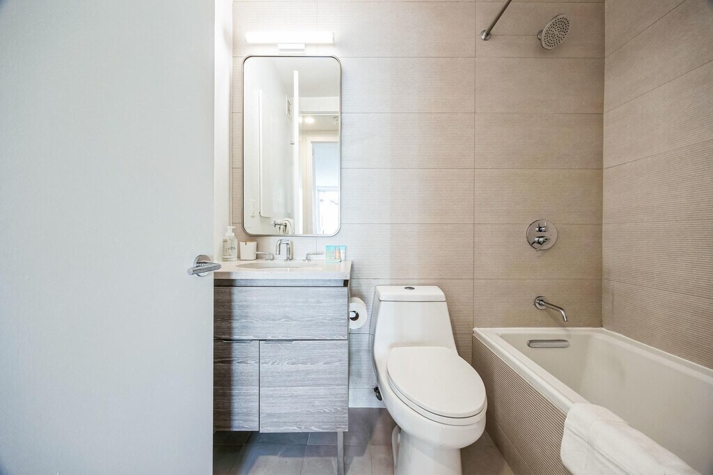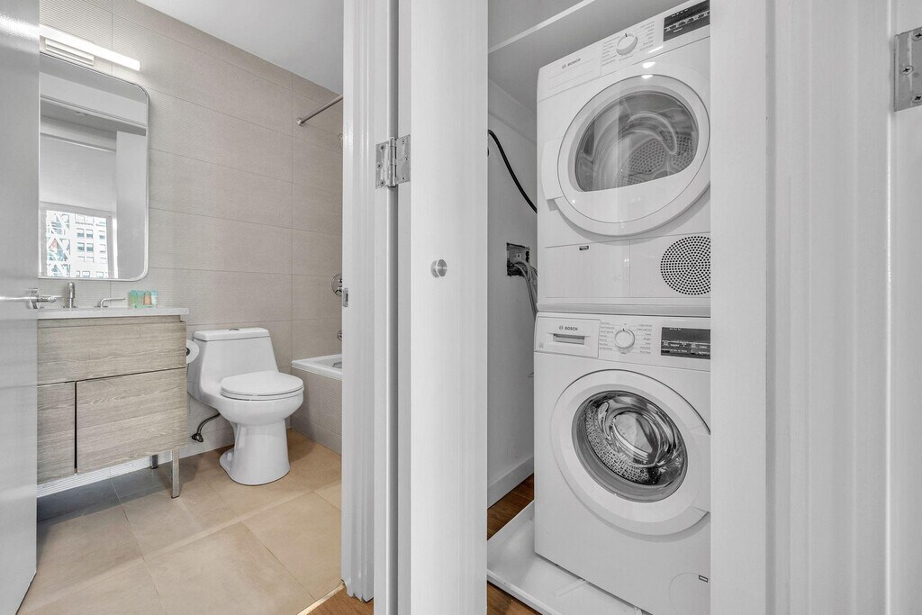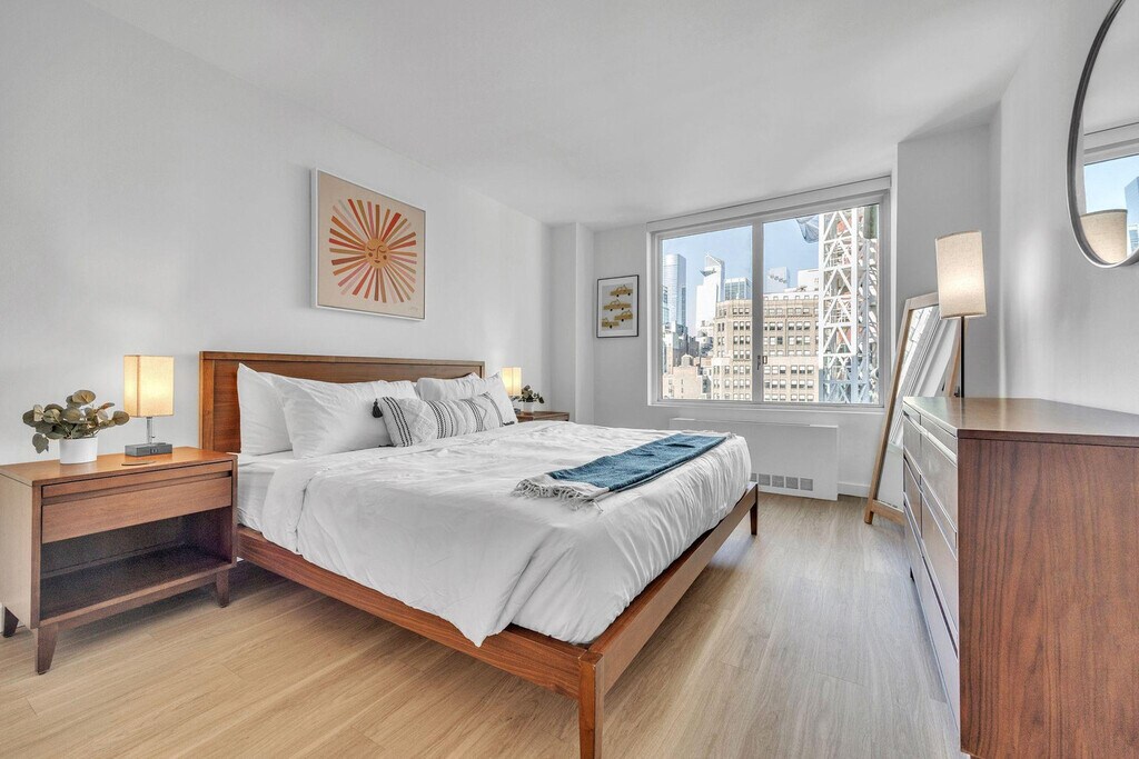 Experience modern luxury and convenience at the vibrant center of Midtown, Manhattan. With the city’s most famous sites just steps from your door and every necessity at your fingertips, enjoy a comfortable, upscale lifestyle in one of the most exciting cities in the world. Take a stroll through nature in beautiful Bryant Park, head over for a burger with friends at Shake Shack, or spend an afternoon shopping at Macy’s. Only a few blocks from the Empire State Building, Whole Foods, Penn Station, and 7 subway lines, you’ll have incomparable access to anything you want in Manhattan and beyond. From the classic high-end finishes to the exclusive amenities, including a landscaped rooftop terrace, co-working space, and 24-hour fitness studio equipped with Peleton bikes, this apartment at Hollingsworth offers a one-of-a-kind combination of practicality and indulgence. This fully furnished 1-bedroom apartment is custom designed for the remote worker looking for an inspiring environment in which to be productive. The unit includes a fully equipped kitchen with a breakfast bar, full bathroom, private balcony, king-size mattress, smart TV, and all utilities. Amenities include in-unit laundry, air conditioning, sound protection windows, 24-hour doorman, valet laundry service, on-site management, landscaped rooftop terrace with fountains, fireplace and grills, sky lounge with gaming tables and catering kitchen, 24-hour fitness studio with Peleton bikes, co-working lounge, and common area Wi-Fi. Internet speeds are not guaranteed and may fluctuate based on your computer model and the router location. Early check-in from 9am-3pm will incur a fee of $75, early check-in before 9am will incur a fee of 1 full night's rent based on selected dates, late check-in after 8pm will incur a fee of $75, late check-out from 11am-3pm will incur a fee of $75, and late check-out after 3pm will incur a fee of 1 full night's rent based on selected dates. There are currently construction projects taking place near this building, which may cause significant noise disruption during work hours. Includes private high-speed internet, standing desk (Uplift), ergonomic work chair (Uplift), 34-inch ultra-wide monitor (Samsung), microphone (Blue Yeti), webcam (Logitech), computer speakers (Bose), LED streaming light, green screen, keyboard (Logitech), mouse (Logitech), laptop stand, and TOTU 16-in-1 Triple Display USB-C 3.1 Docking Station. A laptop computer is not included. [SI]