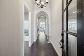 Welcome to this elegant and inviting 4-bedroom, 3-bath north-facing home situated on a premium corner lot in a highly desirable Rowlett neighborhood near Lake Ray Hubbard. Just steps from Lakeside Park South, enjoy easy access to walking trails, a fishing pier, volleyball courts, gazebos, and a playground—all right down the block. Residents can also take advantage of the community pool during the summer months. Inside, you’ll find a bright and open floor plan featuring tall ceilings and a wall of windows that fill the home with natural light. The spacious living area showcases a beautiful stone gas fireplace with a natural wood mantel, creating a warm and welcoming focal point. The modern white kitchen is designed for both style and functionality, offering granite countertops, a large center island with seating for four, stainless steel appliances, a gas cooktop, and a generous pantry. The thoughtfully designed split floor plan provides added privacy for the primary suite, complete with a spa-like bathroom featuring a soaking tub, oversized glass shower, and dual vanities. A private guest suite with its own attached bath is ideal for visitors, while two additional bedrooms share a well-appointed full bath. A dedicated office with French doors just off the main living area offers the perfect space for working from home or flexible use. Additional highlights include a mudroom with built-in bench and cubbies, a whole-home water filtration system, and a separate kitchen water filter. Step outside to a spacious backyard perfect for relaxing or entertaining, complete with a pergola and plenty of room for play. Start your own garden with raised boxes already in place for your to plant this Spring Don’t miss the opportunity to lease this home that blends comfort, style, and convenience—just minutes from the lake!
