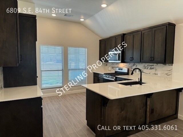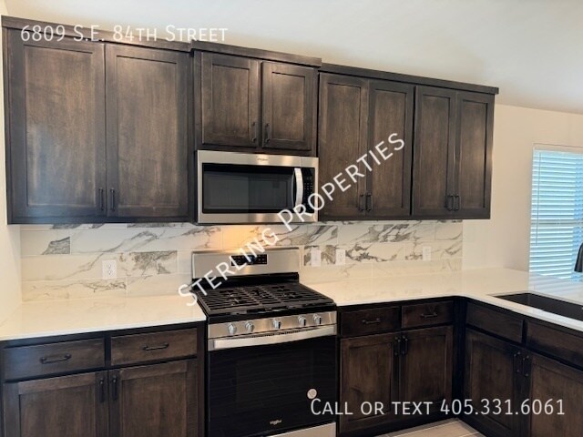 Newly built ENERGY EFFICIENT CONSTRUCTION in the Abbot Lake community in SEOKC.... Moore school district. Conveniently located off SE 89th and Sooner Rd for a quick commute south to Norman or North to Tinker Air Force Base. Open floor design with wood look tile throughout the main living areas. Kitchen sink overlooks the living room with breakfast area in between. Lots of natural light in the kitchen highlighting the stainless steel gas range, built in microwave and pantry. Master suite to the side of the home with a tile shower, garden tub, double vanity and walk in closet. Secondary bedrooms to the back of the home complete with carpet and ceiling fans. Covered back patio with fenced backyard, pet friendly with additional refundable pet deposit. 2 Bathrooms 2 Car Garage 3 Bedrooms Central Heat & Air Covered Patio Gas Stove Open Plan Washer & Dryer Hook Ups