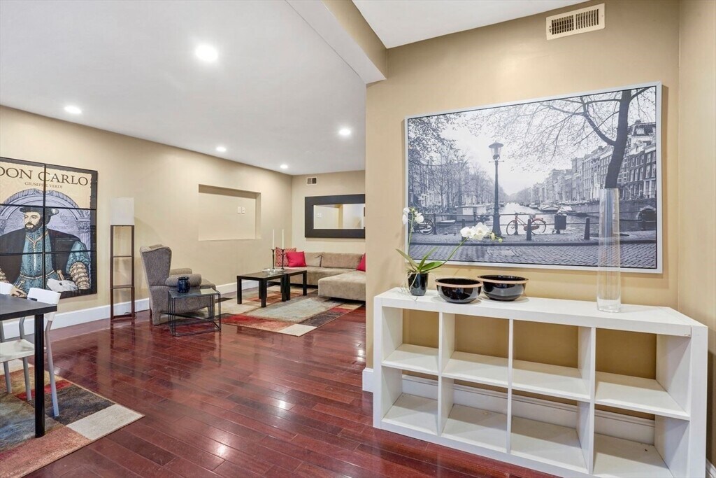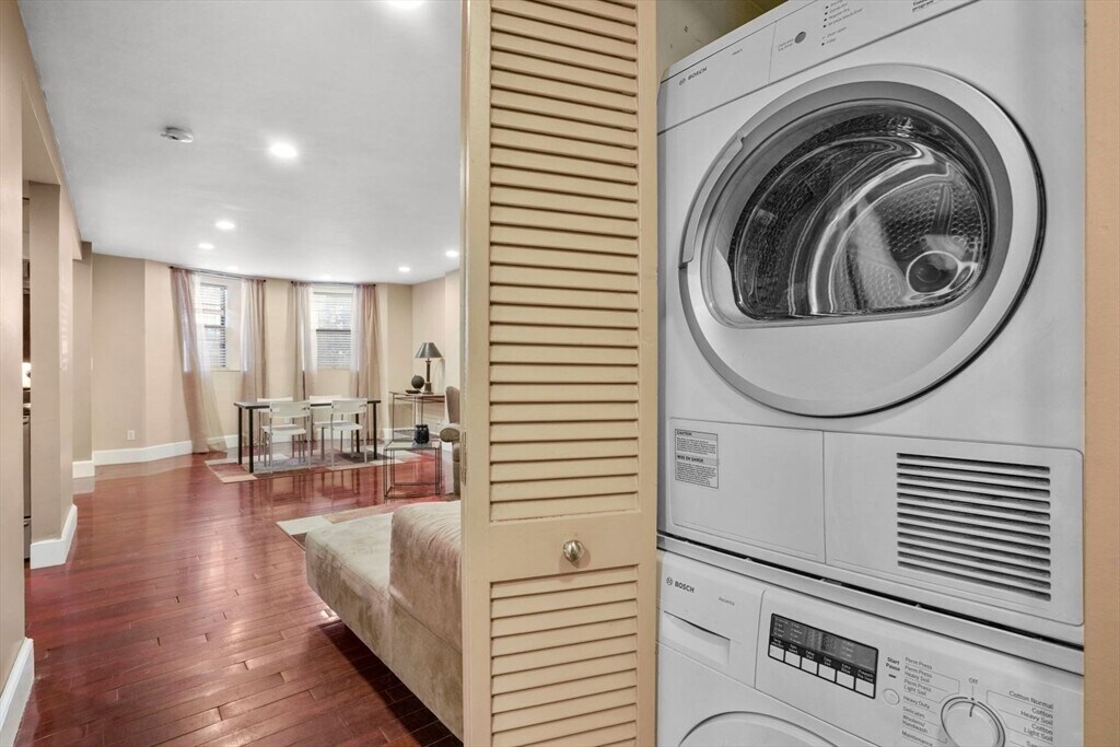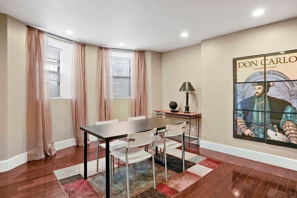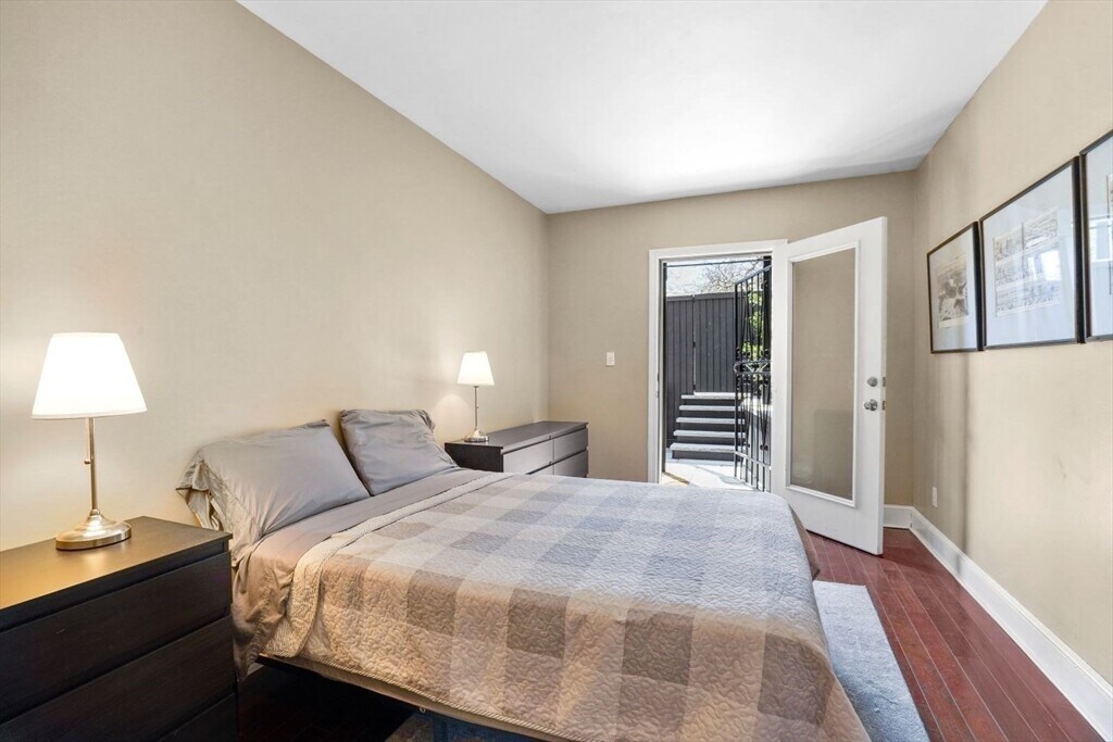 Charming, renovated garden level apartment with private entrance and an updated private Bluestone patio! The spacious open concept living area boasts beautiful Brazilian cherry flooring throughout. Plenty of natural sunlight as well as recessed lighting make for an elegant ambience. Kitchen offers granite counter tops and stainless steel appliances with European glass cabinetry. Bedrooms are large and equally sized and each has direct access to the private patio. Primary bedroom has a large walk-in closet. The bathroom was recently updated with new subway tile and a vanity with marble countertop. Full size in-unit Washer/Dryer and central A/C complete this stunning apartment that has easy access to BMC, 93 South and the Silver Line/MBTA. Moments to quaint South End boutiques and restaurants like Boston Chops, Bar Mezzana, Toro, SE Buttery and the cit