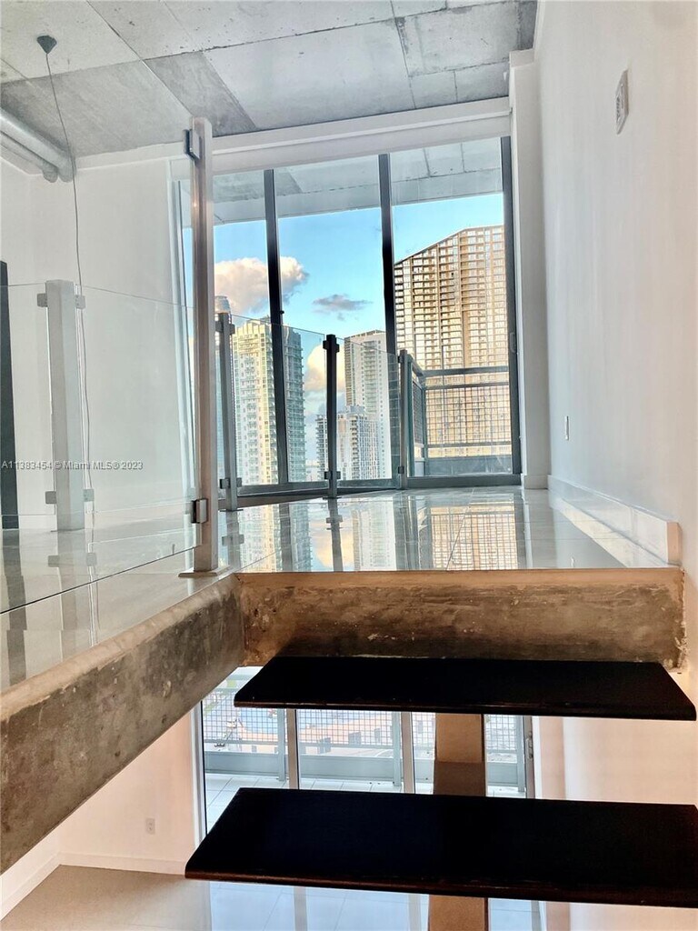 Stunning loft-style residence at Neo Vertika with 20-ft floor-to-ceiling windows showcasing panoramic views of the Miami River, Biscayne Bay, and Downtown skyline. Features include marble floors throughout, modern kitchen with stainless steel appliances & glass backsplash, spacious bedroom with California Closets & glass railings, plus washer & dryer inside unit. Amenities: fitness center with city views, expansive pool with large terrace, BBQ area, tennis courts, courtyard, on-site restaurant & 24-hour security. Steps to Brickell City Centre and just minutes from Miami Worldcenter, offering premier shopping, dining, and entertainment. Building allows leasing, making it an excellent option for both end-users and investors.