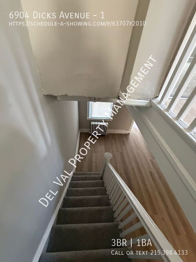 Newly Upgraded 3 Bedroom with Deck Overlooking Paschall Playground – Southwest Philadelphia Welcome to your next home! This beautifully updated 3-bedroom, 1-bath unit is located in the heart of Southwest Philadelphia, offering space, comfort, and a great view right from your backyard. Rent: $1,665/month + all utilities Property Features: Spacious 3 bedrooms with ample closet space 1 full bathroom Laminate flooring throughout the first floor Wall-to-wall carpeting upstairs for added comfort Private rear deck overlooking Paschall Playground – perfect for relaxing or entertaining Full basement with washer & dryer hookups Rear entrance access for added convenience Garage available for storage Washer/Dryer Hook Ups in Basement! Prime Southwest Philadelphia Location: Located just steps from Paschall Playground, this home offers easy access to local parks, schools, and everyday essentials. Nearby Shopping & Retail: Eastwick Shopping Center Island Ave shopping corridor (restaurants, grocery stores, retail) Penrose Plaza (ShopRite, dining, retail) Public Transportation (SEPTA): Close to multiple SEPTA bus routes including: Route 108 (Airport & 69th Street Terminal) Route 37 (to Broad Street Line) Route 63 (West & South Philadelphia access) Nearby Elmwood Avenue trolley line (T5) for easy commuting This location provides quick access to Center City, Philadelphia International Airport, and major highways, making commuting simple and convenient. Schedule your tour today—this one won’t last!
