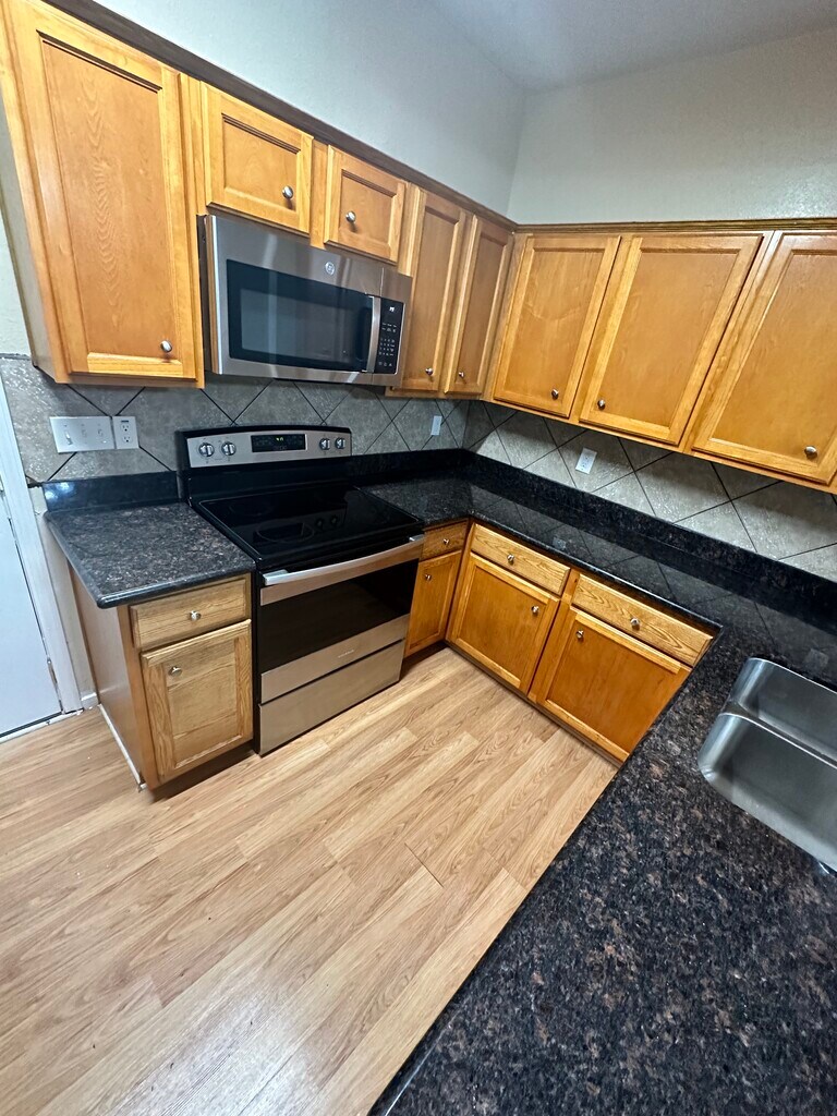 4 bed 2.5 bath 1500 sqft 2 story with a backyard features 10ft ceilings, granite counter tops, stainless steel GE microwave/dishwasher/electric range, all led interior and exterior light, alarm system, 8 camera security system with remote viewing capabilities from app on IOS/Android/or computer(mac or pc compatible). This property is located near the medical center, nrg stadium, downtown houston, hobby airport, meyerland, pearland, galleria, University of Houston, TSU, Rice University, HCU, and more. Bus stop 100ft away. Numerous public/private/charter schools and groceries stores like HEB, Fiesta, and Krogers near by. Gulf gate shopping mall with Best Buy, Home Depot, Lowes, and office depot 5 minutes away. Area going through gentrification. New homes and new commercial building construction all in the immediate area. Smart front door lock and smart door bell also included. Washer and dryer connections in second floor laundry closet. New stainless appliances included. Enough parking for 4 cars directly in front of the unit. Lawn Maintenance, Pest Control, and HVAC check ups extra $65 a month. Call or text to arrange a tour. Ready for move in 8/1/25