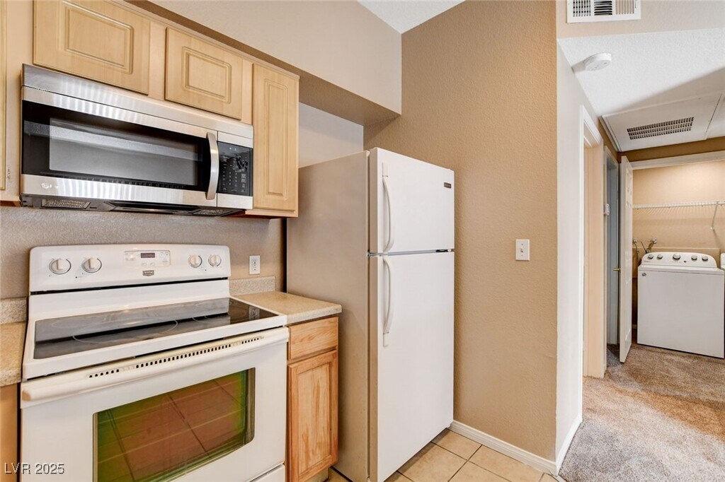 Beautiful, modern and spacious move-in ready condo in well maintained gated community. All appliances, washer and dryer included. Open floorplan, large living room with covered patio and outside storage closet, spacious dining area and kitchen. Community features pool, clubhouse, exercise room and covered parking. Great location near shopping, restaurants, Centennial Hills Hospital, I-95 and I-215.