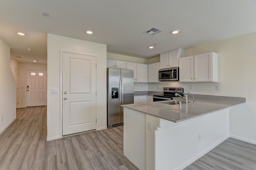 Brand new 3 bedroom Town House by DR Horton Home in Skye Hills Masterplan community. Gorgeous kitchen with stainless steel appliances, Quartz counters, & island! Washer, dryer, and blinds included. Luxury Vinyl Plank flooring throughout all common areas, carpet in the bedrooms. Stunning location in the Northwest, offers trails, parks, a pool, and retail nearby.