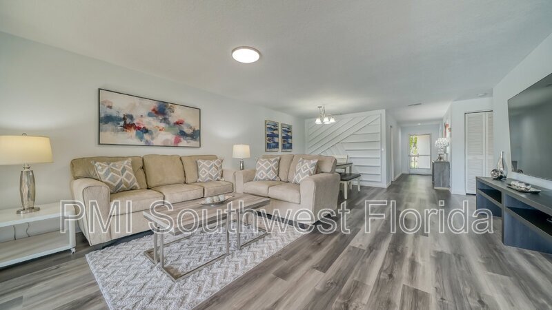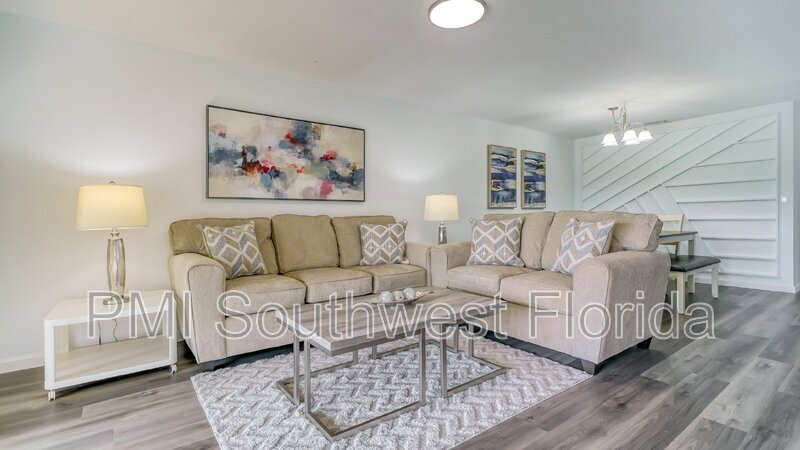 Highly desirable furnished Palm Aire condo with stunning view of the golf course and waterway. This second floor 3BR 2BA condo is nicely updated and with a minimalist contemporary flair. Neighborhood/Association: Palm Aire Country Club is an optional, seasonal membership golf and country club with golf, swimming, tennis, and social activities. As a renter, you do have access to the community pool just about 50 yards away, available for condo residents only. Living Area: Enjoy 3 bedrooms, 2 baths in the 2nd floor spacious end unit. Living room/dining room combo features an extra-large TV and vinyl flooring. Screened lanai offers a lovely view and entertainment space. Kitchen: Gallery style kitchen with a stackable washer/dryer, coffee station, and a desk to set up a convenient workspace. Stocked with basic set of dishes, glassware and utensils. Bedrooms/Baths: The primary bedroom, with queen sized bed is a nice size with two closets - one is a walk-in closet. Ensuite with tub/shower combo for convenience. Extra linen closet adds more storage space. Guest room has queen sized bed, 2nd bath features walk in shower and pocket door to close off the guest suite area. 3rd bedroom works as a flex space with pullout queen size sleeper sofa. Can be a den, office, or guest bedroom. Exterior/Parking: 1 assigned spot with guest parking just steps from the unit. No more than two cars are allowed. Other: Water/sewer, trash all included in the annual rent. Tenant responsible for electric, cable, and internet. Owner will not remove furnishings. Pets: 1 small pet, cat or dog under 20 lbs allowed per the HOA. Pet rent is $35 per month/per pet plus additional pet security deposit of $250/pet. Lease Term: Available for one year lease with option to renew. 6months + 1day lease considered with a $200 per month fee. Minimum security deposit equal to 1x the monthly rent OR No-Security Deposit Option: Ask about applying for a zero-security deposit option through our partnership with The Guarantors. HOA - $100 HOA application fee, approval and processing time can take up to 2 weeks. Commercial vehicles not allowed. At PMI Southwest Florida, we strive to provide an experience that is cost-effective and convenient. That’s why we provide a Resident Benefits Package (RBP) to address common headaches for our residents. Our Standard Program handles insurance, air filter changes, utility set up, credit building, rent rewards and more at a rate of *$39.95/month, added to every property as a required program. You have the option to elect our Premium Program, which includes all of the above plus identity protection & pest control at a rate of *$49.95/month. *If you provide your own insurance policy, the RBP cost will be reduced by $11.95, which is the amount of the insurance premium billed by Second Nature Insurance Services. More details upon application. Pet Details: 1 small pet, cat or dog under 20 lbs allowed per the HOA. Pet rent is $35 per month/per pet plus additional pet security deposit of $250/pet.