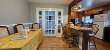 Large living room with fireplace and views. Two bedrooms on the first floor and two bedrooms on the second floor. Dining room. Eat in kitchen with counter to eat,cook and entertain. Second floor office or den. Wood floors. New carpet and paint. Furnished. Private yard
