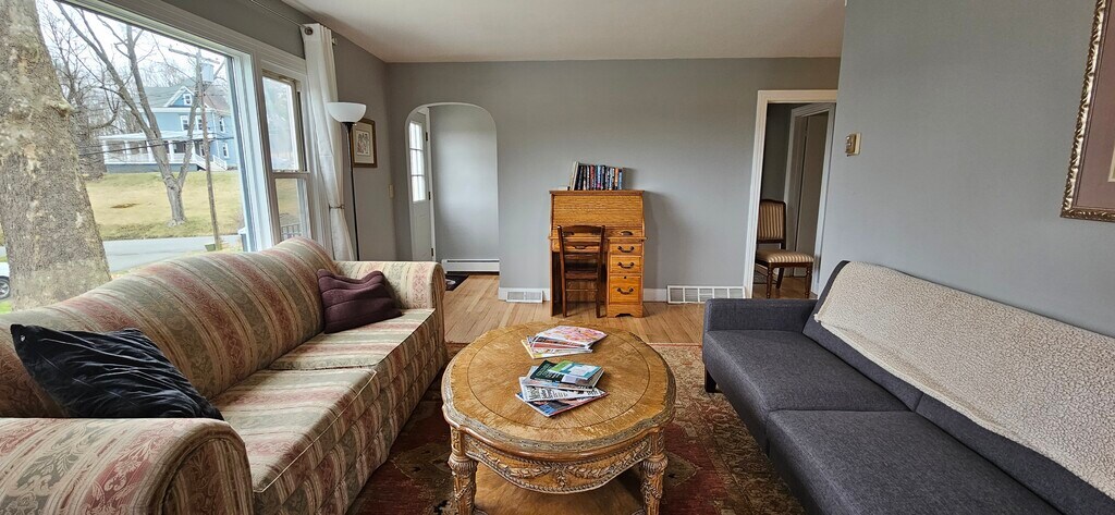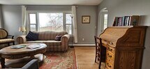 Bright & happy village Cape off a quiet, dead-end street includes 4 bedrooms, 2.5 baths, Central A/C, woodstove in LR, private off-street parking, full basement, gas BBQ & wood-burning fire pit on large yard abutting open fields perfect for reading, sunbathing or enjoying fresh country breezes. Established neighborhood off a dead-end street where peaceful strolls can be had from your door. Half-mile to Main St where eateries and shops abound, from yoga to retail, Crandell Movie Theatre, bookstore, banks, Bimi's cheese shop/restaurant/bar, Yianni's American cuisine at The Chatham House, Fiesta Cafe, Chatham Grill, vegan coffee shops, Village Co-Op and more... just beyond find Chatham Library and schools, and Crellin town park w/community gardens, swim pond, swings, skate park, tennis etc. 1.2 miles to Taconic Parkway to I90, 12 miles to Hudson/Amtrak and only 35mi to Albany. All appliances incl new clothes washer & dryer. $3400/mth including landscaping, propane, solar and sewer. Showings available Mon-Friday or by appt, contact Broker. Annual lease required. Satisfactory credit and background checks required.