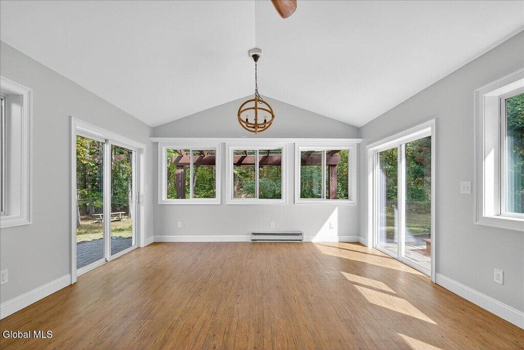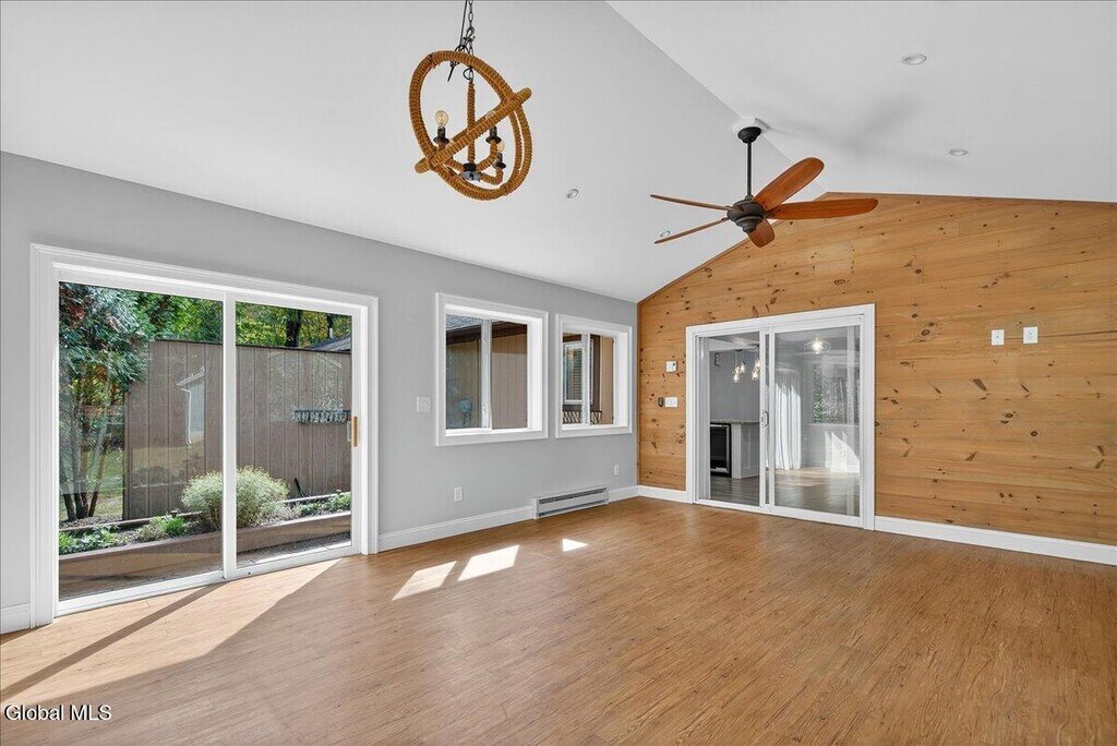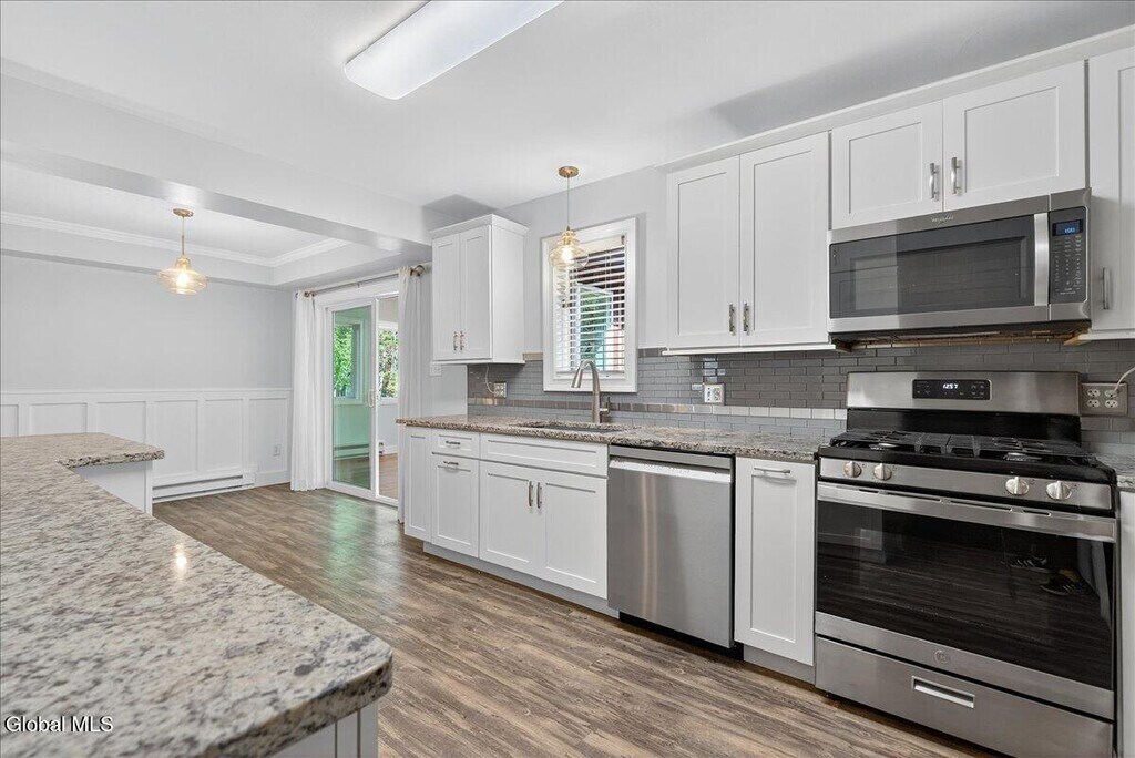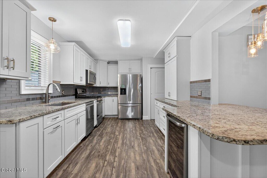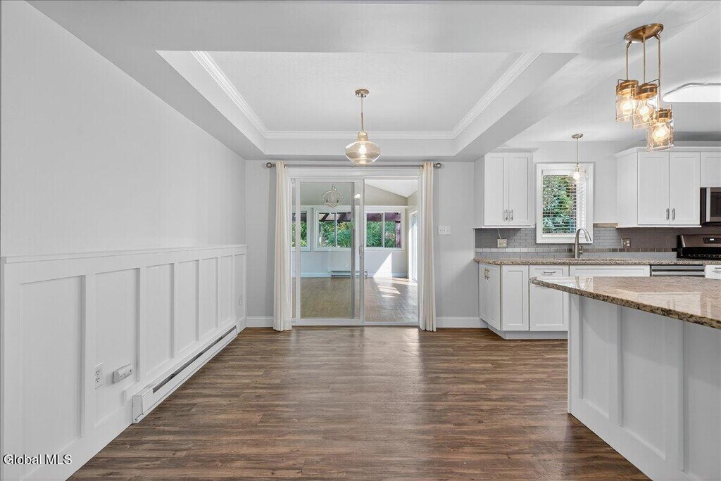 Stylish & Spacious (1267 sqft) 2-Bedroom 1 Bath Duplex with Sunroom, Garage & Luxury Finishes 7A James Ct, Gansevoort This fully renovated 2-bedroom, 1-bath duplex offers comfort, quality, and convenience in a quiet cul-de-sac within the highly regarded Schuylerville School District. Inside, enjoy a bright sunroom ideal for relaxing or working from home, elegant crown molding, and a cozy propane fireplace in the main living area. The modern kitchen features granite countertops, stainless steel appliances (brand new gas stove and dishwasher), a bar-top counter for casual dining, and a built-in beverage refrigerator. Additional highlights include an in-unit washer and dryer, new AC unit, attached 1-car garage, and off-street parking. Step outside to your own private patio surrounded by a beautifully landscaped yard and garden perfect for outdoor living. Just minutes to I-87, shopping, and Saratoga Springs.