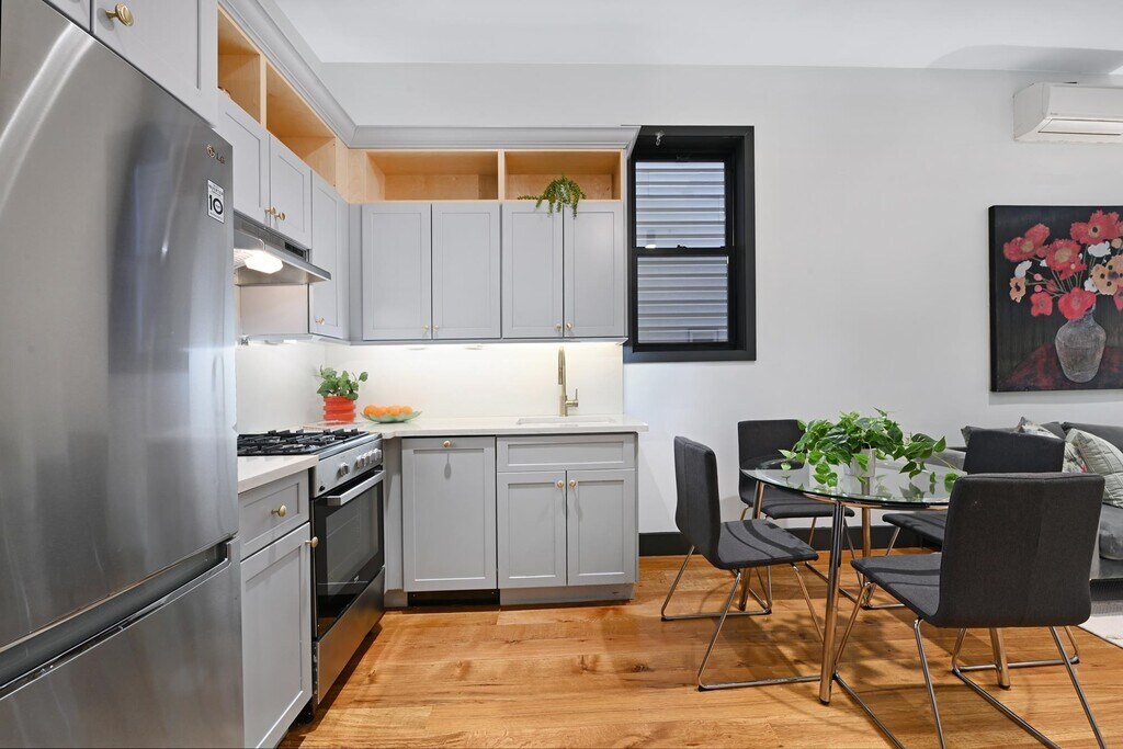 Discover the ultimate urban escape at 7 St Pauls Ave #4R, a sophisticated 2 bedroom, 2 bath home perfectly nestled on the desirable crossroads of Jersey City Heights and Hoboken. Part of a boutique collection of residences, this home beautifully blends Art Déco elements with modern design, creating a unique and stylish living space. Step inside a world of contemporary living where turn-of-the-century charm is highlighted by gleaming hardwood floors, thoughtful interiors, striking black trim, and curated pendant and chandelier lighting throughout. The open-concept kitchen is a chef's delight, boasting custom shaker cabinetry, sparkling white quartz countertops, elegant brass fixtures, and a suite of stainless steel appliances. The bathrooms are equally luxurious, designed with tile to the ceiling, beautiful brass trim, and high-end glass showers; the primary ensuite adds flair with a deep blue accent wall. For added convenience, the home includes a stackable LG washer and dryer. Located in a stunning, newly refinished white brick building on a quiet street just off Palisade Avenue, this residence boasts unparalleled convenience and accessibility. Residents enjoy easy access to the best of both vibrant communities—The Heights and Hoboken—with an abundance of shops, restaurants, priceless parks, and excellent schools nearby. Commuting is a breeze with quick access to the PATH, ferry, and Holland Tunnel. Don't miss the chance to live in this highly desirable location! Contact now to schedule your private viewing.