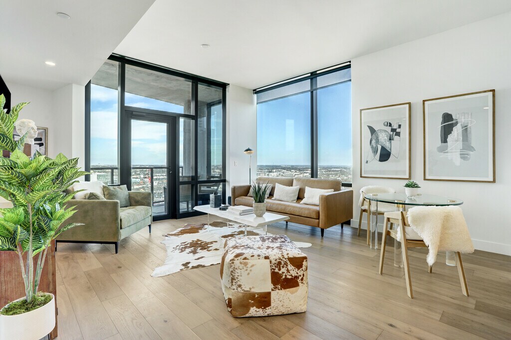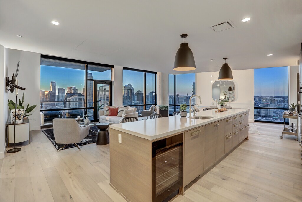 Positioned high above Rainey Street in one of downtown Austin’s most sought after high rise buildings, this two bedroom residence with a dedicated flex space captures unobstructed views of Lady Bird Lake and the Austin skyline from nearly every room. Floor to ceiling glass defines the living spaces, pulling in natural light throughout the day while framing the lake, the city, and the energy of downtown Austin below. The layout opens naturally, creating a seamless flow between the kitchen, dining, and living areas, designed for both everyday living and entertaining. The kitchen is finished with quartz countertops, custom cabinetry, and a full suite of premium appliances, offering both function and a clean, modern aesthetic. Just beyond the main living areas, a separate flex space creates an ideal home office, media space, or quiet retreat. The primary suite is oriented toward the views, creating a calm, light filled space, while the secondary bedroom offers flexibility for guests or additional use. Custom closet systems have been thoughtfully integrated, including expanded shoe storage and a rotating full length mirror. Located in the heart of the Rainey Street District, this residence offers immediate access to Austin’s hike and bike trail, top restaurants, nightlife, and waterfront living, all within moments of your front door. Residents of 70 Rainey enjoy a full service luxury lifestyle with resort style amenities including a rooftop pool, fitness center, sauna, concierge, business lounge, dog park, multiple outdoor gathering spaces, and access to a cold plunge. This is downtown Austin condo living defined by views, walkability, and a building that continues to set the standard for high rise living in Austin. Also available for Sale: $1,695,000 MLS ID 4735788