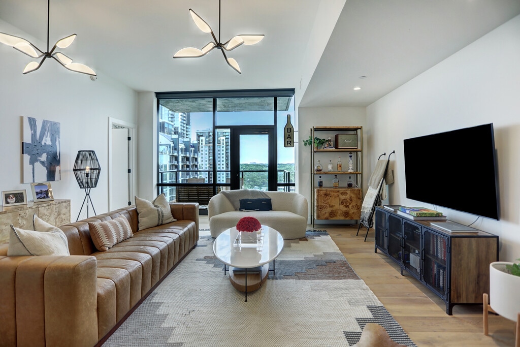 Looking for a sleek and modern place to call home? Look no further than this gorgeous two-bedroom, two-bath condominium in the highly desirable Rainey Street District on the 29th floor. This recently renovated space boasts stunning contemporary finishes and an open floor plan perfect for entertaining friends and family. With plenty of natural light and beautiful city and lake views, you'll always want to stay and relax on your private balcony. Plus, being located in the Rainey Street District means you'll be just steps away from some of Austin's best restaurants, bars, and entertainment. So take advantage of this amazing opportunity to lease a slice of heaven. With unobstructed views of Lady Bird Lake, the Austin Hill Country, and Austin's downtown skyline, you will enjoy all Austin offers. Whether you're an avid nature lover or appreciate breathtaking sunsets, you will find your zen in this stunning space. With an open floor plan and a focus on natural light and modern design, this apartment perfectly matches anyone who loves entertaining. Amenities include 24-Hour Concierge Service, Fitness Center, Pool with Sun Deck and Panoramic Views, Private Resident Lounge, Yoga deck, Outdoor Kitchen and Entertaining Area Dog Park with Grooming Station, Bike Storage and Repair Station, On-Site Parking Garage with two side-by-side reserved parking spaces, and Wi-Fi Access in all Common Areas. Have a four-legged friend; the landlord is negotiable!