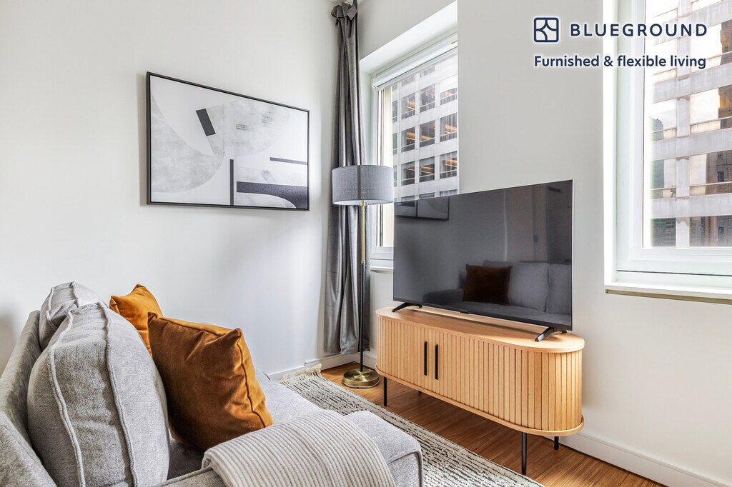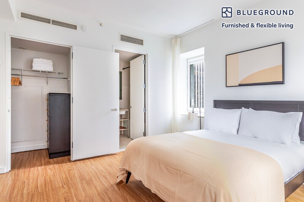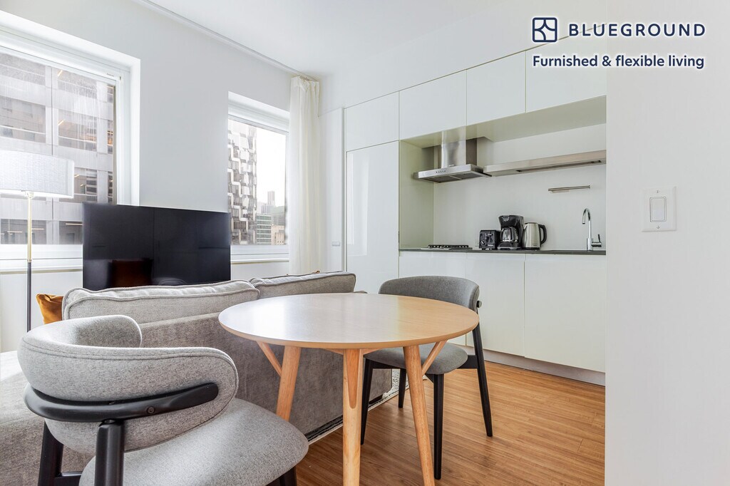 Discover the best of New York, with this one bedroom apartment in Midtown South with high floor views over the city. It’ll be easy to simply show up and start living in this furnished apartment with its fully equipped kitchen, living room, and our dedicated, on-the-ground support. (ID #NYC1425) The advertised rate of $3,130/month is the lowest available price, based on a 1 month(s) stay with a move-in date of December 29, 2026. If you’re looking for a 1-year stay, the rate is $6,000/month. Rates vary depending on the duration of stay, season, and other parameters. For exact pricing and additional pricing components, please visit our website and enter your desired move-in and move-out dates. The rate is applicable when billed upfront; it can be higher if billed in multiple payments. Brokers are welcome to reach out. Were you looking for an unfurnished lease? Try Blueground instead and upgrade from unfurnished to furnished living: - Furnished at rates comparable to unfurnished - No setup or furniture costs - save thousands - Move-in ready - save time, just bring your suitcase Designed with you in mind Gorgeous furniture, fully equipped kitchen, smart TV, and a premium wireless speaker are just a few of the amenities you’ll find inside this one bedroom apartment. Ideally located in New York, you’ll find a lot to love outside as well. When you’re ready to relax, you’ll be happy to discover every Blueground bedroom comes with superior quality mattresses, luxury linens, and cozy towels. We handle everything so you can simply show up and start living. This apartment also offers in-apartment laundry. Sleeping arrangements Queen Bed, 63in/160cm Amenities Building amenities unique to this one bedroom apartment include an on-site: - Doorman - Dryer - Elevator - Washing machine Arrival and ongoing support The entire apartment is yours to enjoy! Throughout your stay, you’ll have access to our Client Experience team through the Blueground App. You can schedule additional cleanings, submit maintenance requests, and view our neighborhood recommendations with just a few taps. We’ll share all details upon confirmation of your stay. Ideally Located This furnished apartment is located in Midtown South, the city’s high tech sector. Midtown South is generally used to refer to the portion of Midtown that is below 42nd Street. This central location allows residents to be just a short walk or ride away from some of the city's most famous landmarks and institutions. For instance, the Main Branch of the New York Public Library and the iconic Empire State Building. For a breath of fresh air, visit Bryant Park - known as Manhattan’s Town Square. The gorgeous residential high-rises in this neighborhood offer spectacular city views. Other things to note Building amenities may have an extra cost. This Blueground apartment has flexible lease options, allowing you to book it for one month, a year, or more. Brokes CYOF. We take great pride in ensuring every photo displayed is shot in our own units with our actual furnishings. That said, we regularly refresh our decor and furniture arrangement, which may differ from what’s pictured. [GO]