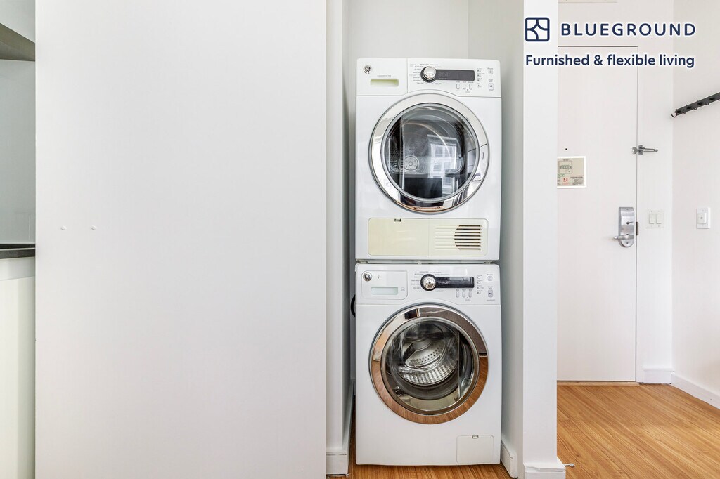 Discover the best of New York, with this one bedroom apartment in Midtown South. It’ll be easy to simply show up and start living in this furnished apartment with its fully equipped kitchen, living room, and our dedicated, on-the-ground support. (ID #NYC2058) The advertised rate of $3,310/month is the lowest available price, based on a 1 month(s) and 2 day(s) stay with a move-in date of December 29, 2026. If you’re looking for a 1-year stay, the rate is $5,760/month. Rates vary depending on the duration of stay, season, and other parameters. For exact pricing and additional pricing components, please visit our website and enter your desired move-in and move-out dates. The rate is applicable when billed upfront; it can be higher if billed in multiple payments. Brokers are welcome to reach out. Were you looking for an unfurnished lease? Try Blueground instead and upgrade from unfurnished to furnished living: - Furnished at rates comparable to unfurnished - No setup or furniture costs - save thousands - Move-in ready - save time, just bring your suitcase Designed with you in mind Gorgeous furniture, fully equipped kitchen, smart TV, and a premium wireless speaker are just a few of the amenities you’ll find inside this one bedroom apartment. Ideally located in New York, you’ll find a lot to love outside as well. When you’re ready to relax, you’ll be happy to discover every Blueground bedroom comes with superior quality mattresses, luxury linens, and cozy towels. We handle everything so you can simply show up and start living. This apartment also offers in-apartment laundry. Sleeping arrangements Queen Bed, 63in/160cm Amenities Building amenities unique to this one bedroom apartment include an on-site: - Doorman - Dryer - Elevator - Washing machine - Pets allowed Arrival and ongoing support The entire apartment is yours to enjoy! Throughout your stay, you’ll have access to our Client Experience team through the Blueground App. You can schedule additional cleanings, submit maintenance requests, and view our neighborhood recommendations with just a few taps. We’ll share all details upon confirmation of your stay. Ideally Located This furnished apartment is located in Midtown South, the city’s high tech sector. Midtown South is generally used to refer to the portion of Midtown that is below 42nd Street. This central location allows residents to be just a short walk or ride away from some of the city's most famous landmarks and institutions. For instance, the Main Branch of the New York Public Library and the iconic Empire State Building. For a breath of fresh air, visit Bryant Park - known as Manhattan’s Town Square. The gorgeous residential high-rises in this neighborhood offer spectacular city views. Other things to note Building amenities may have an extra cost. This Blueground apartment has flexible lease options, allowing you to book it for one month, a year, or more. Pets are welcome, though weight limits and breed restrictions apply and may incur fees. Brokes CYOF. We take great pride in ensuring every photo displayed is shot in our own units with our actual furnishings. That said, we regularly refresh our decor and furniture arrangement, which may differ from what’s pictured. [SI]