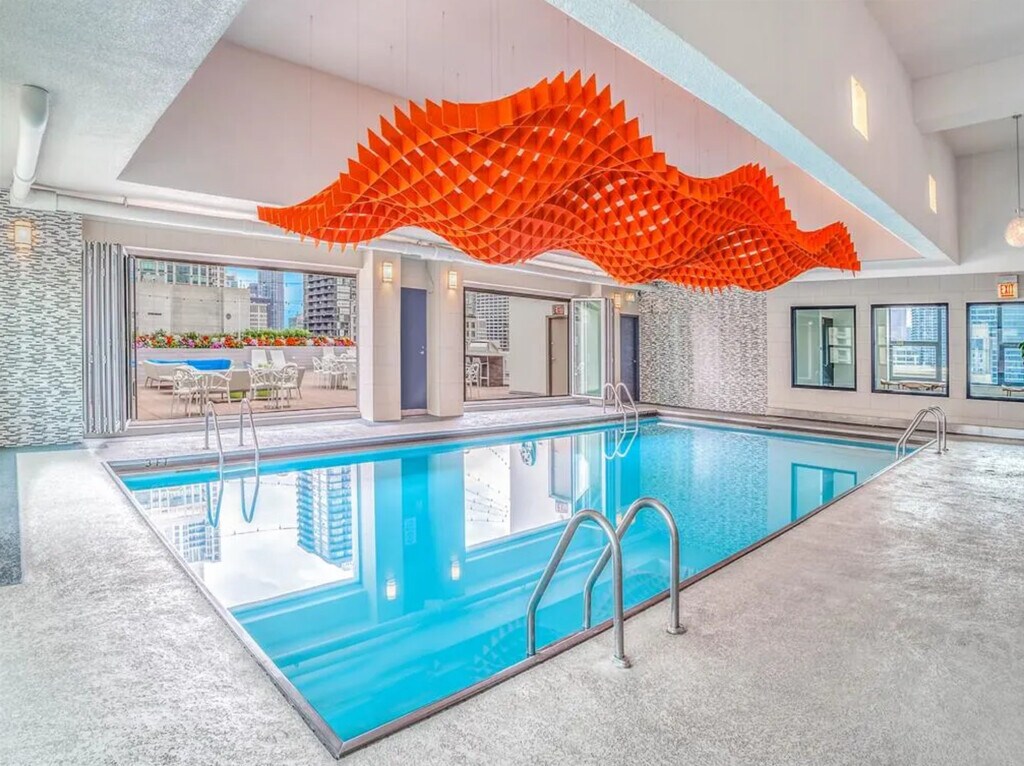 Modern high-rise living in the heart of River North. Residents enjoy luxury amenities including a rooftop pool and terrace with skyline views, a fully equipped fitness center with sauna, and stylish resident lounges perfect for relaxing or working remotely. The building also features 24-hour concierge service, a business center, and convenient garage parking. Spacious apartments include contemporary kitchens, hardwood flooring, oversized closets, and private balconies in select homes, placing comfort and convenience just steps from Chicago’s best dining, shopping, and nightlife.