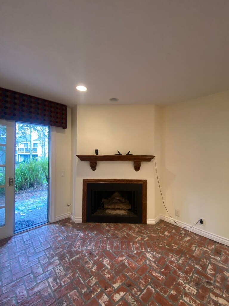 Charming Two Bedroom Condo close to Orange Circle. Tile/Brick Flooring downstairs and Laminate Flooring upstairs. Spacious joining dining and living room with fireplace and a sliding patio door to patio overlooking a flowing stream. Kitchen has stainless appliances, breakfast counter and area for kitchen table with patio door to front enclosed patio. One car garage and assigned carport. Pet friendly with restrictions. Community includes pool and jacuzzi. Everyone over 18 years MUST apply online